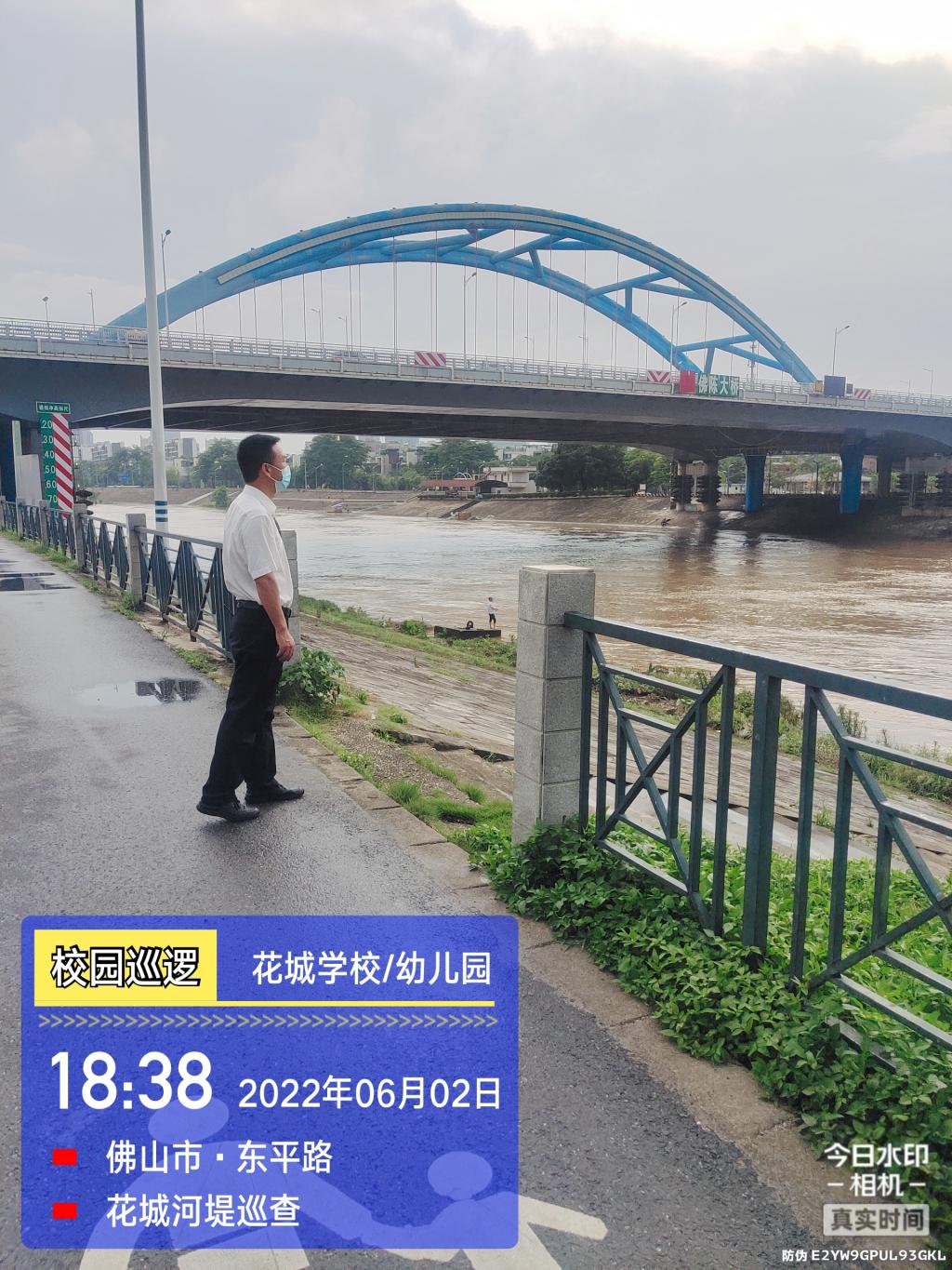 为了全面掌握学校周边的水域情况,杜绝学生溺水事故发生,我校保安人员每天去花城河堤巡视,查看水域的变化,排查出现水涨的安全隐患,为全体师生保驾护航。