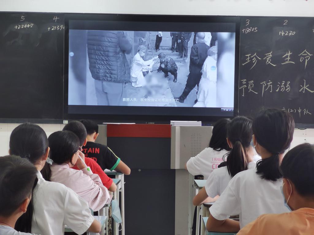 在防溺水安全主题班会课上,通过观看“防溺水教育”和“防溺水六不一要”的视频,让学生了解野外水域的危险性、意外落水自救的方法、遇人落水施救的方法,全面认识到预防溺水的安全知识。学生牢记“防溺水六不”并签署了承诺书,保障自身的安全。