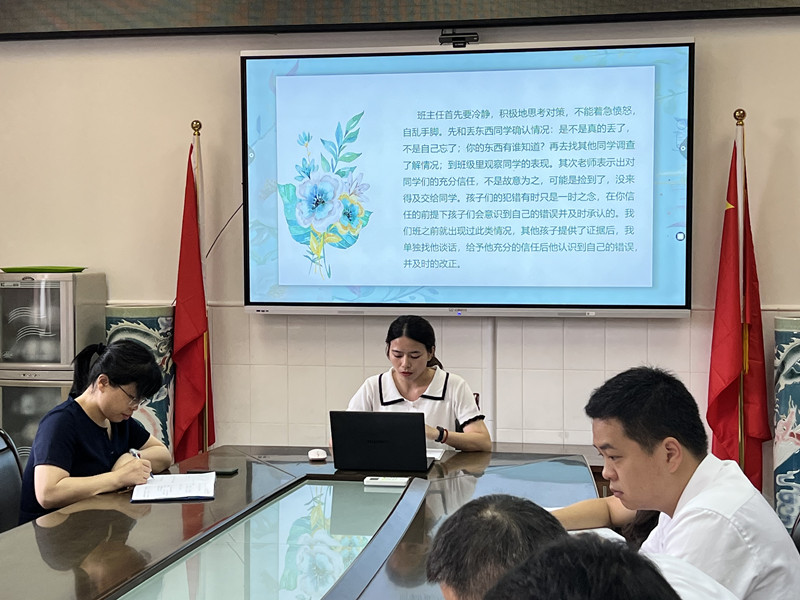 为进一步加强班主任队伍建设,充分发挥班主任在学校教育工作中的重要作用,及时总结和推广班级管理经验,达到班主任专业化成长的目的,提升班主任的专业素养和管理水平,使我校德育工作更能适应新时期发展的需要,2022年6月13日上午,碧桂花城学校在会议室举行了班主任微教研活动的第五期。本次微教研活动由杨静老师主讲,主题为《班级发生失窃怎么办》