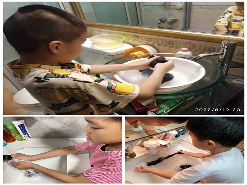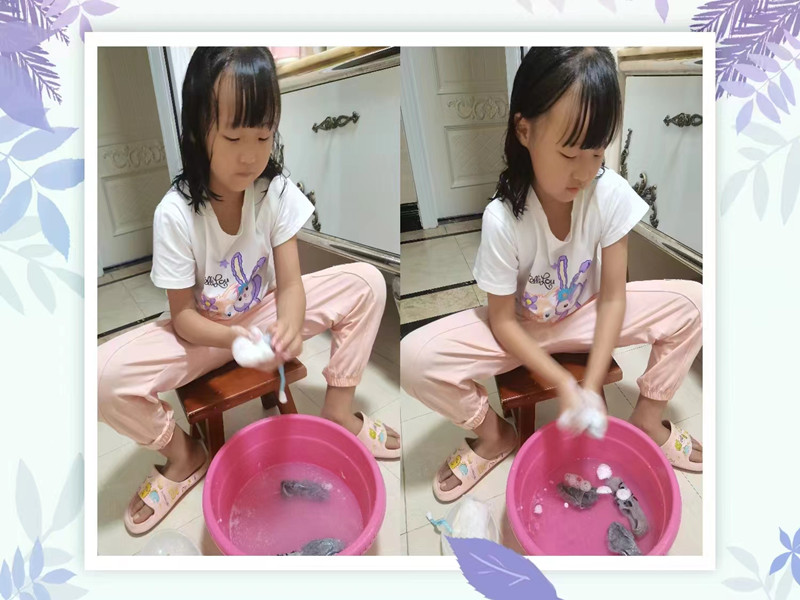 父爱如山,岿然不动;父爱如海,辽阔深远。父爱是一种默默无闻、寓于无形之中的一种感情,一年级小朋友们用小手洗衣袜,表达对父亲的挚爱。