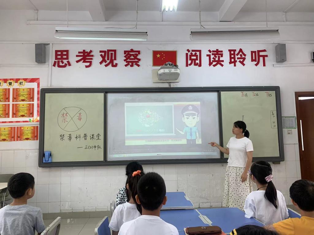 为了增强少先队员们对毒品危害性的了解和认识,提高少先队员们的安全防范意识,营造自觉抵制毒品、拒绝毒品的浓厚氛围,碧桂花城学校于近期开展了禁毒教育系列宣传活动。