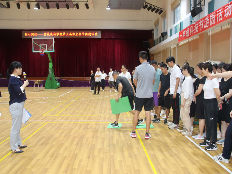 本次班主任节一共分了五个环节:开幕式,全校班主任们迎着朝阳站在主席台上,接受了本班孩子的献花以及他们亲手制作的奖状;“夸夸我的班主任”书签制作大赛,孩子们各展奇谋,制作了一张张精美的书签,送给自己的班主任;“班主任能力大赛之情境答辩”,所有参赛的班主任们从抽选题目,到组织语言现场答题,再到回答评委团专家们的即时问题,都得在五分钟内限时完成,整个过程精彩纷呈,展现了碧桂花城学校的班主任们极高的专业素养;“同心同行团建活动”在综合馆以年级为单位进行,每位老师都从紧张的工作压力中解放出来,全情投入到活动中,释放了自我,提升了团队合