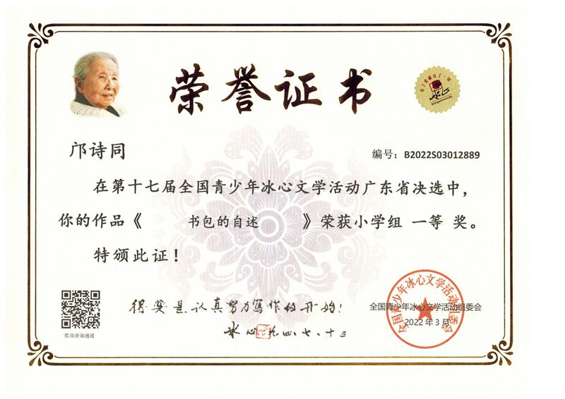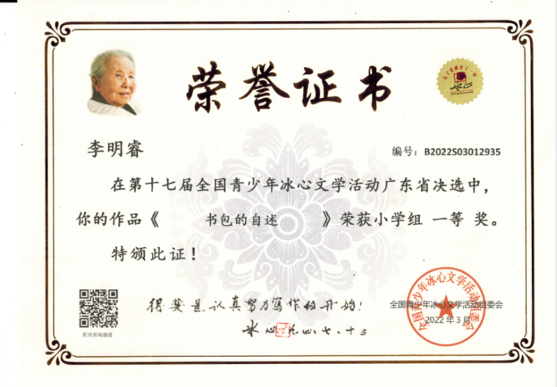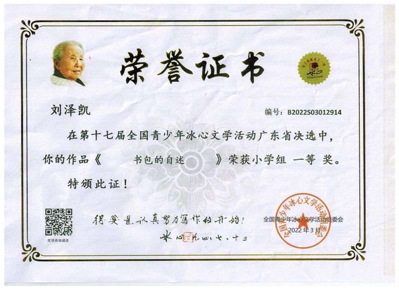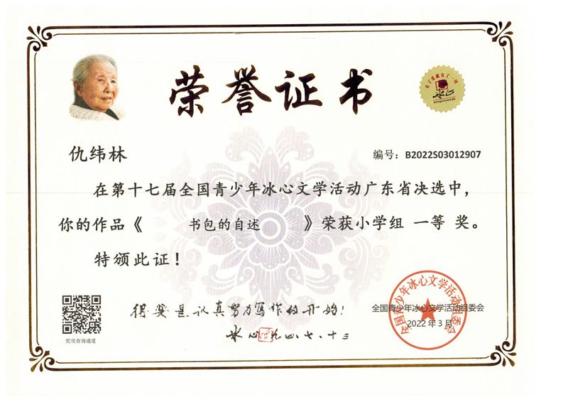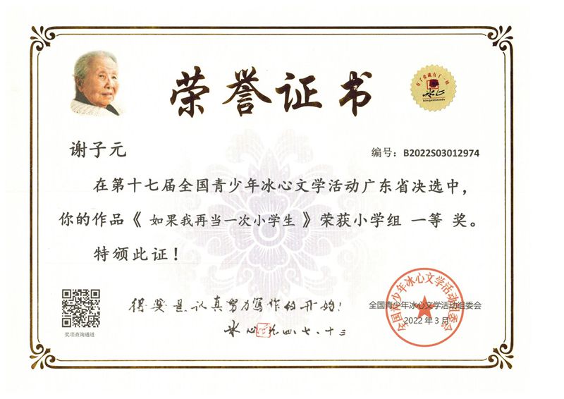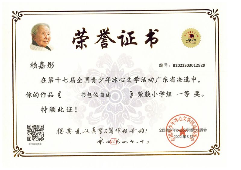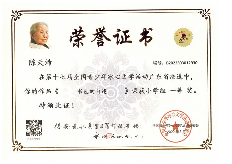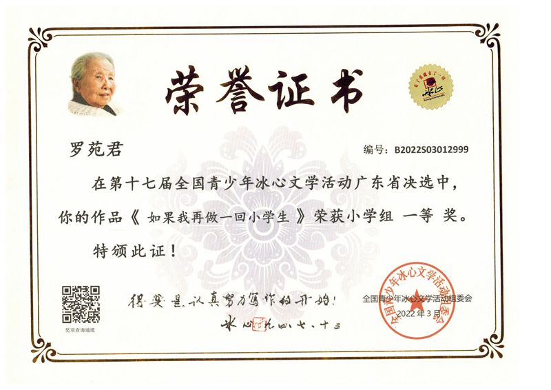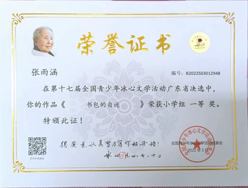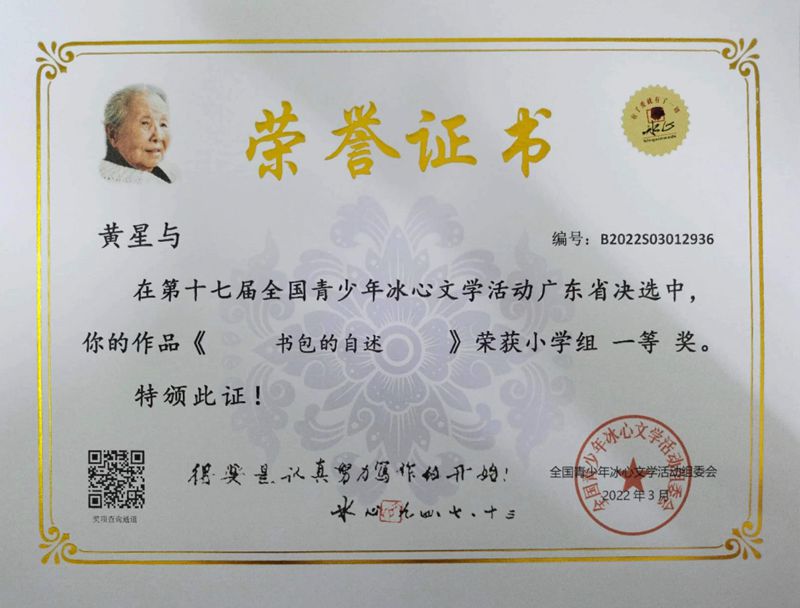 今年三月份,碧桂花城学校组织学生参加了第十七届全国青少年冰心文学活动。
