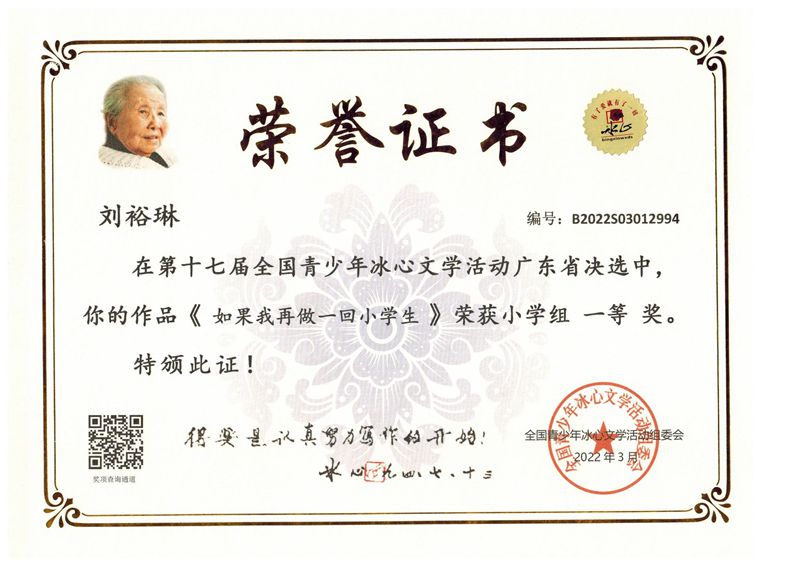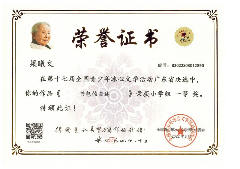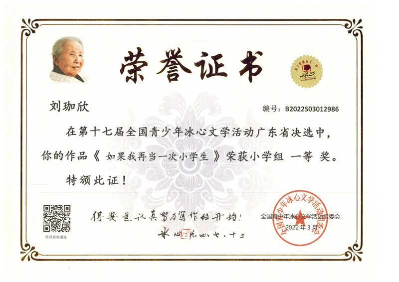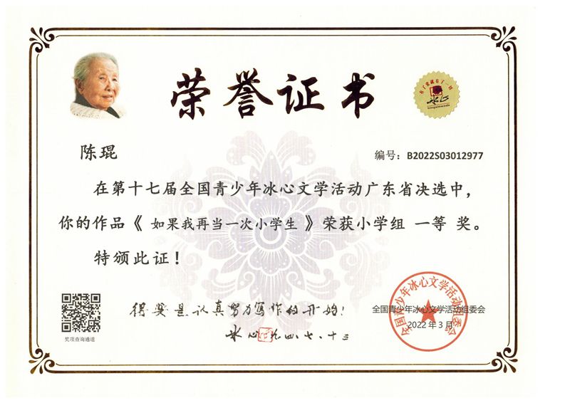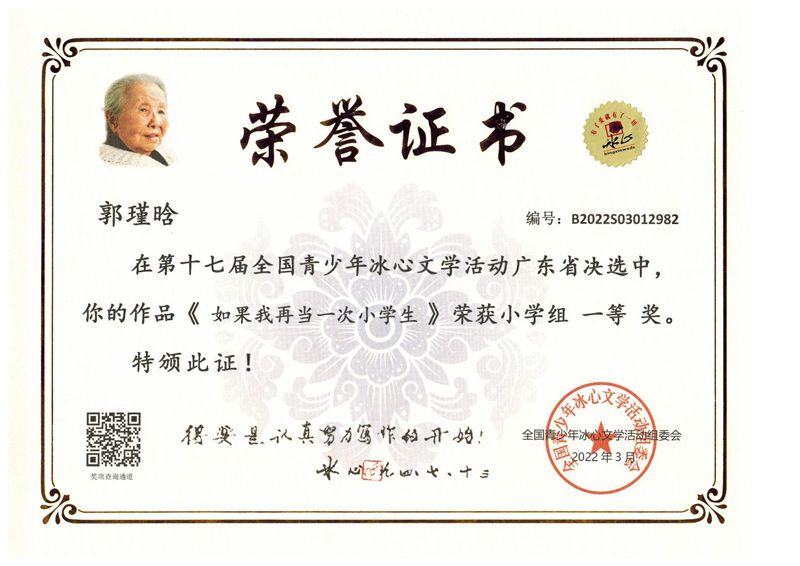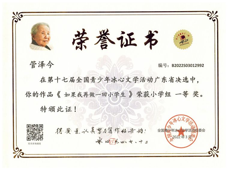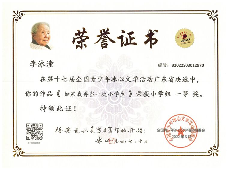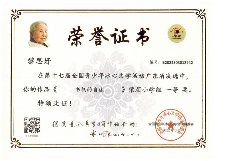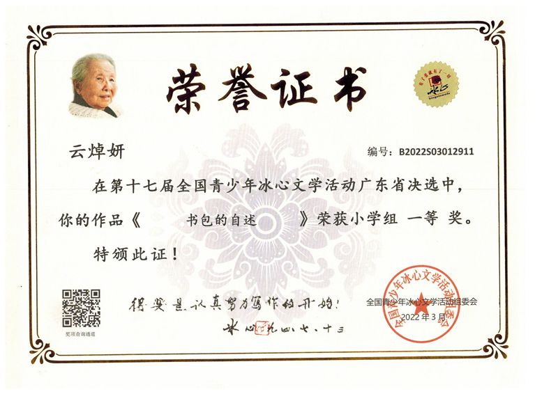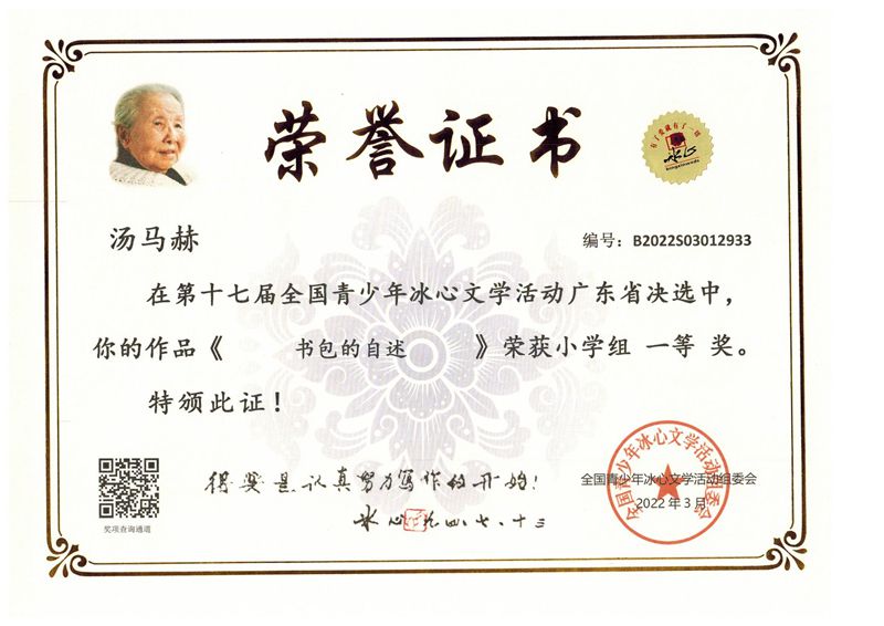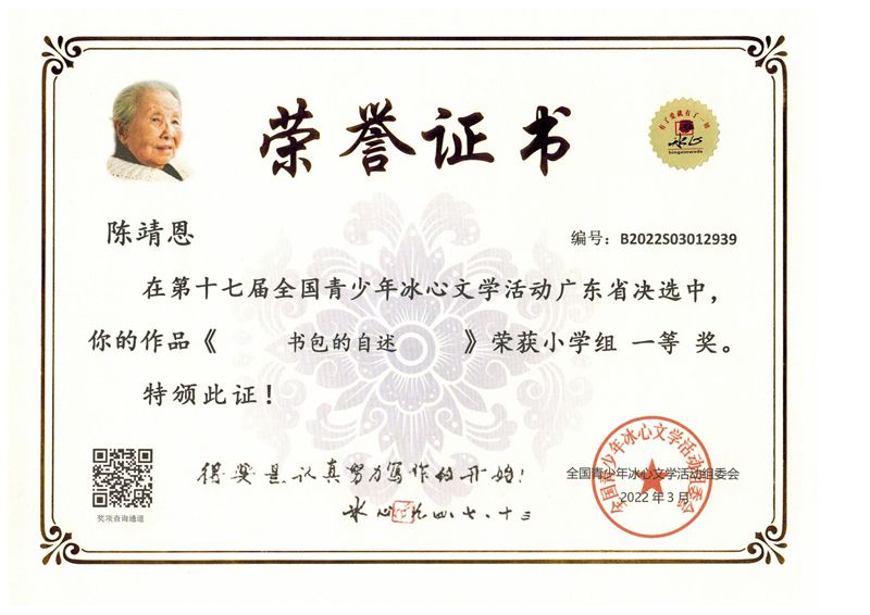 今年三月份,碧桂花城学校组织学生参加了第十七届全国青少年冰心文学活动。