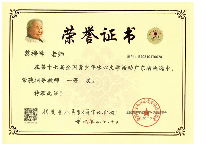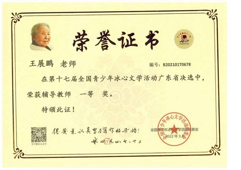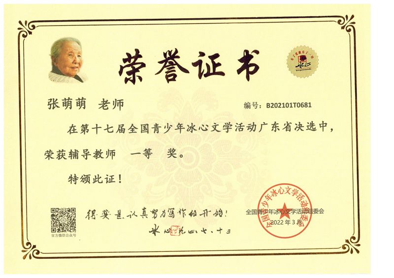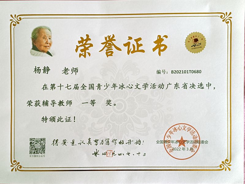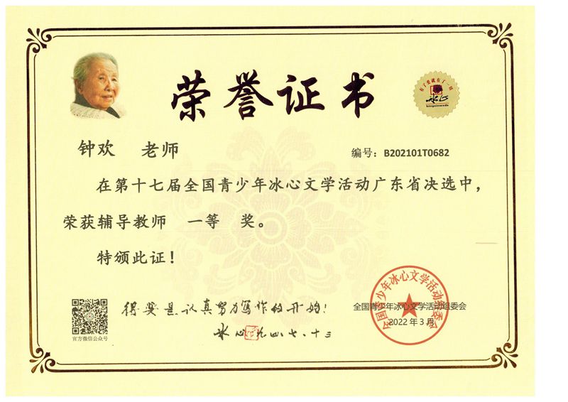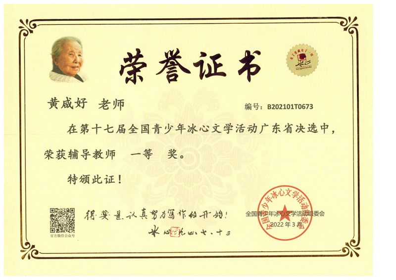 近日获悉,在第十七届全国青少年冰心文学系列活动中,我校语文组老师悉心指导,同学们积极参与,用心作文,参赛同学捷报频传。在省决赛中,我校有119名同学取得了优异成绩。同时我校也被评为“写作教学示范学校”。