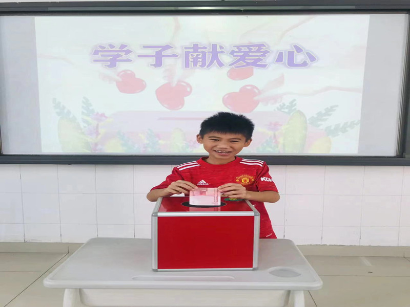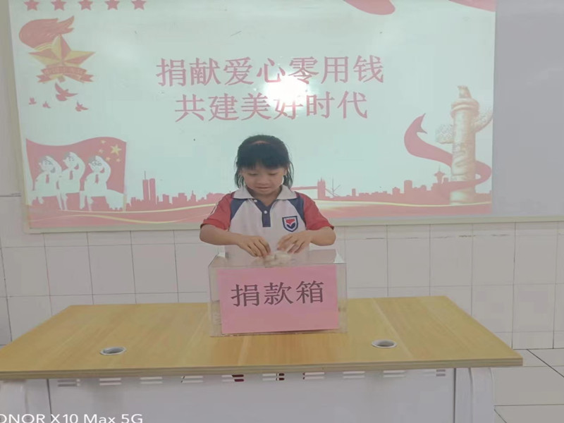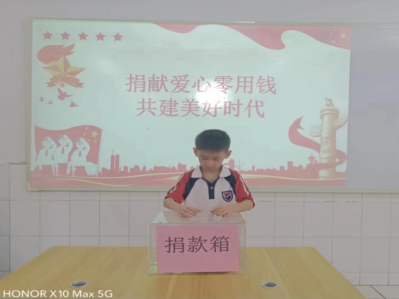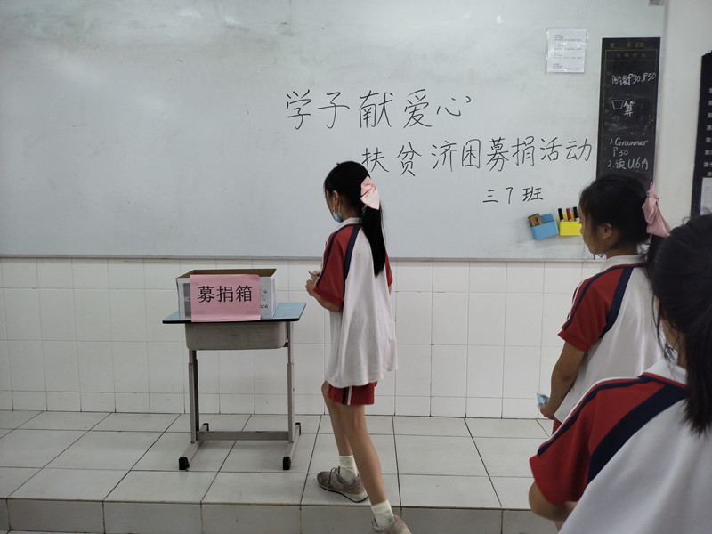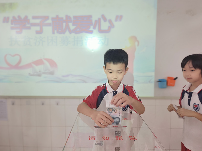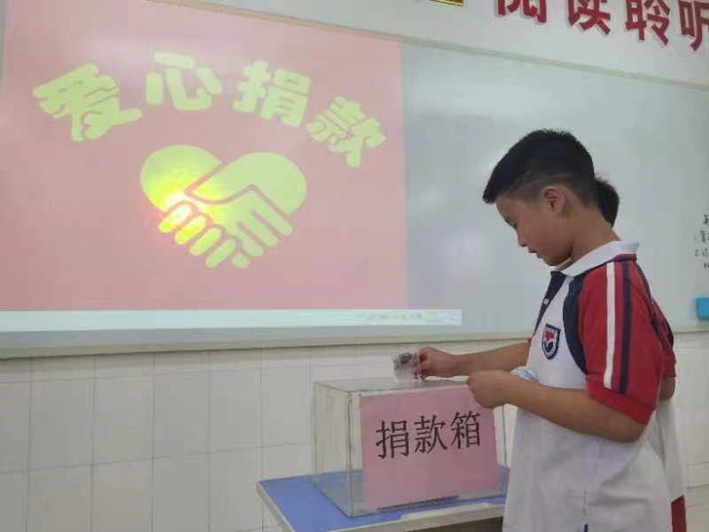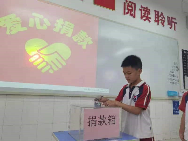 各班学生在班主任的带领下,积极响应号召,踊跃参与,纷纷捐献爱心零用钱。瞧!一双双有神的眼睛,一张张稚气的脸庞,正在郑重地将自己的零花钱投进捐款箱,这正是小小少年对于社会主义核心价值观的践行,这正式花城学子的担当!