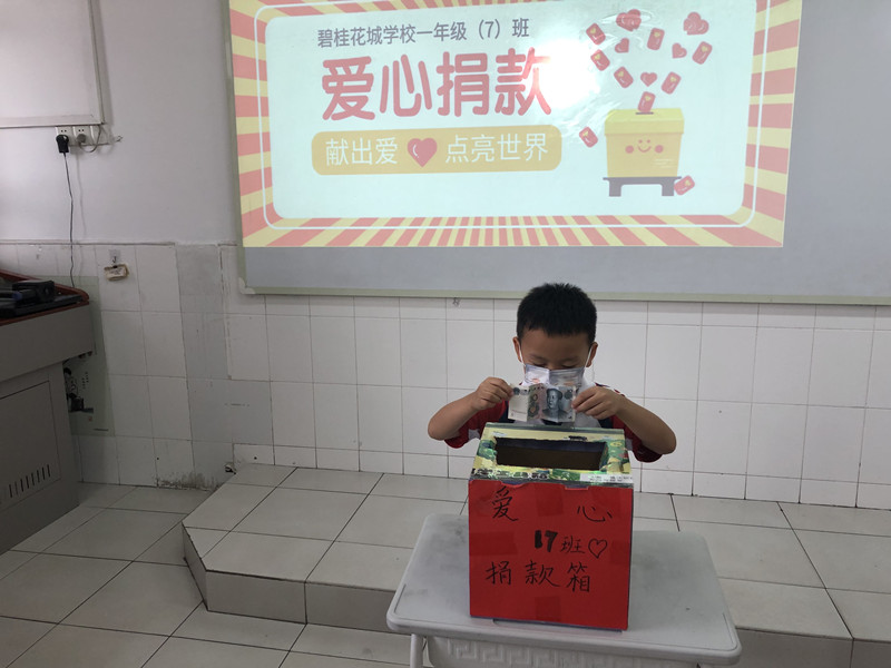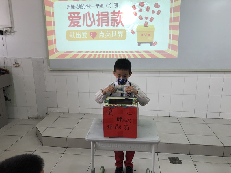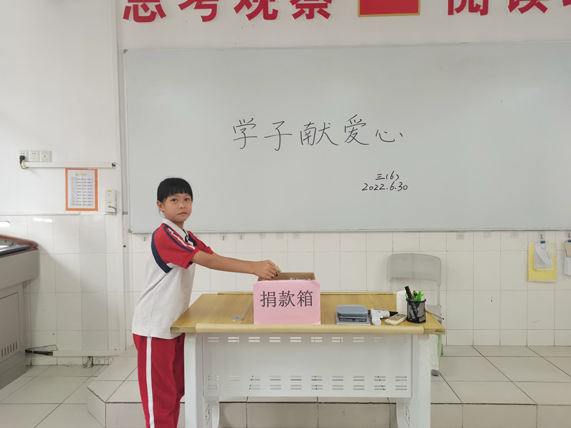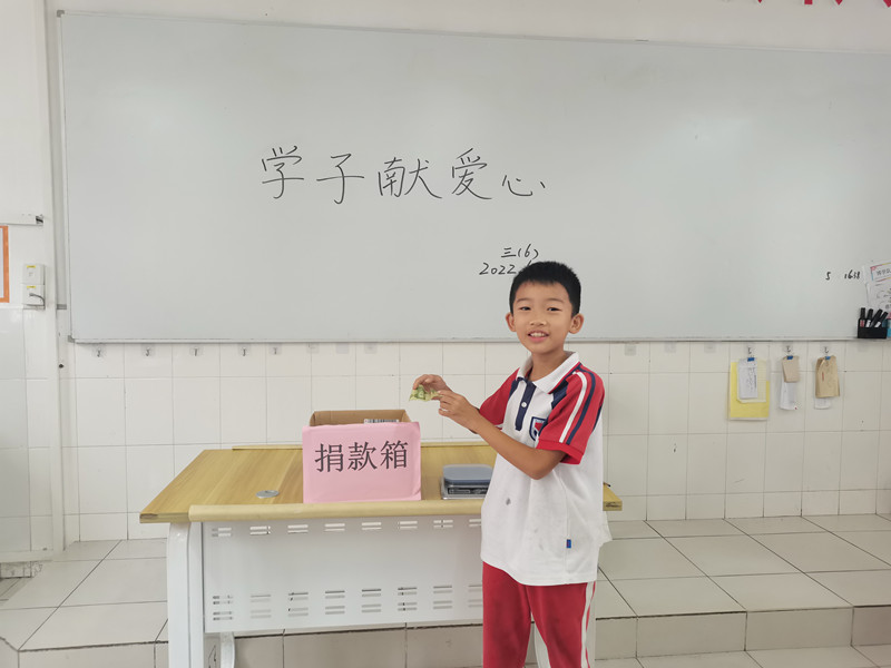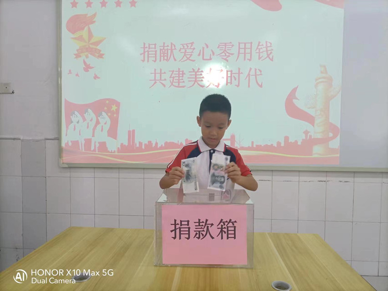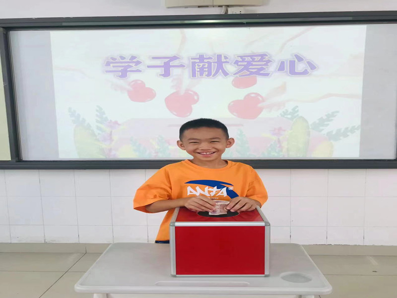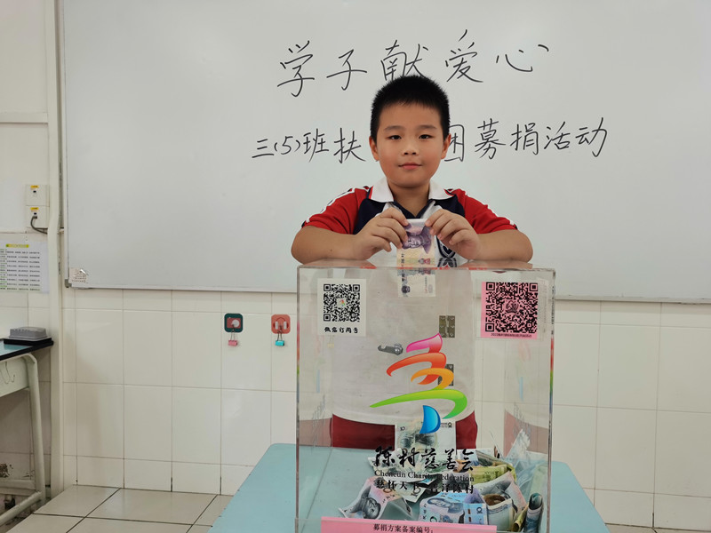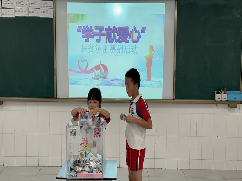 各班学生在班主任的带领下,积极响应号召,踊跃参与,纷纷捐献爱心零用钱。瞧!一双双有神的眼睛,一张张稚气的脸庞,正在郑重地将自己的零花钱投进捐款箱,这正是小小少年对于社会主义核心价值观的践行,这正式花城学子的担当!