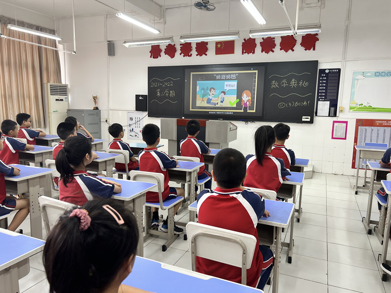 快乐放暑假,安全“不放假”。典礼伊始,孩子们先观看了安全教育视频。接着,花城警务室吴润根警长以生动的案例为基础,给孩子们讲述消防安全、防溺水安全、交通安全等知识,教孩子们一些自救自护小常识,并且细心叮嘱同学们注意做好安全防护,为同学们的假期生活敲响了安全警钟。