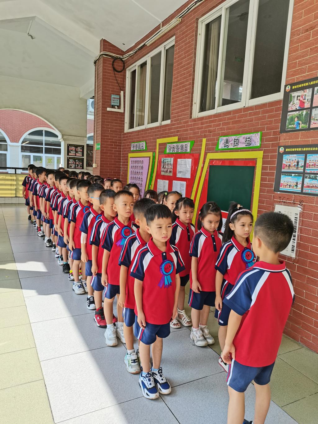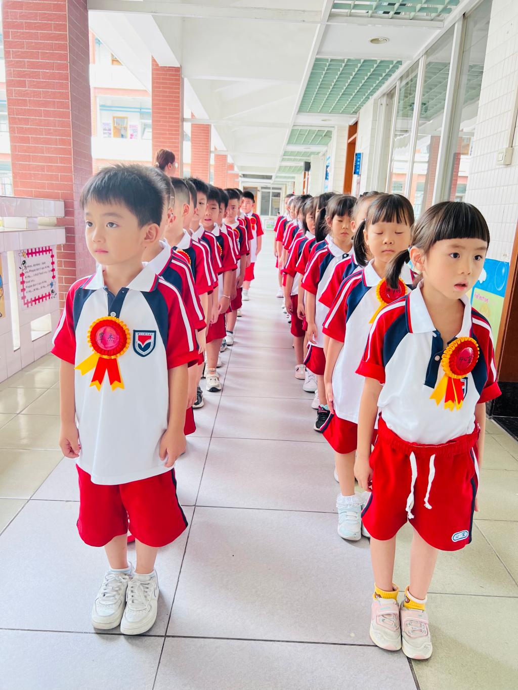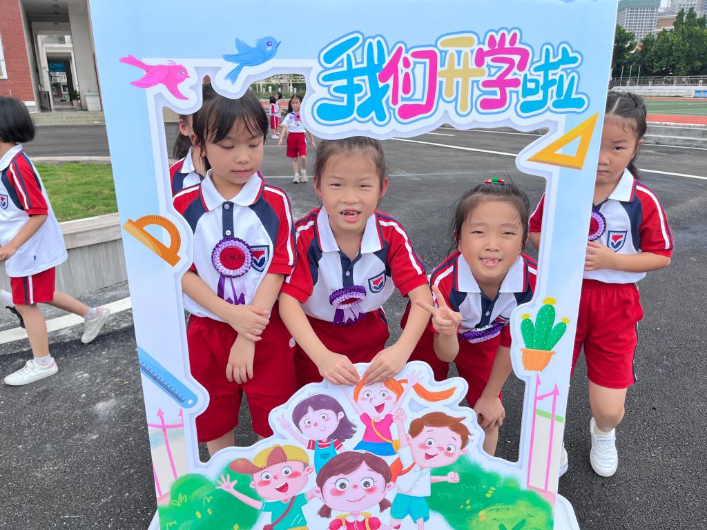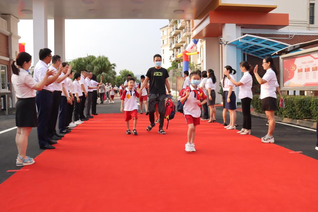 校道上星光熠熠,热闹非凡。一年级学生身穿新校服,背着新书包,迫不及待地牵着家长的手走过了一条象征成长之路的红地毯。新生们参加完入学仪式、开学典礼后,来到了期盼已久的教室,正式开启他们的小学学习生活。