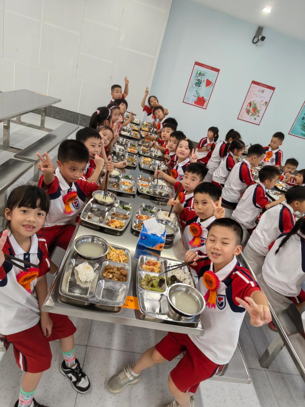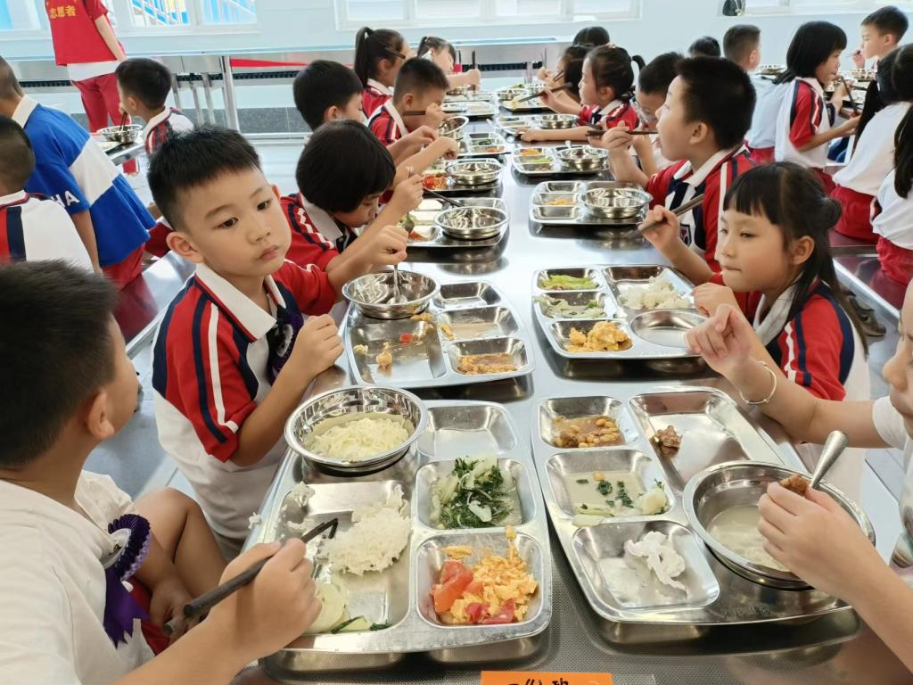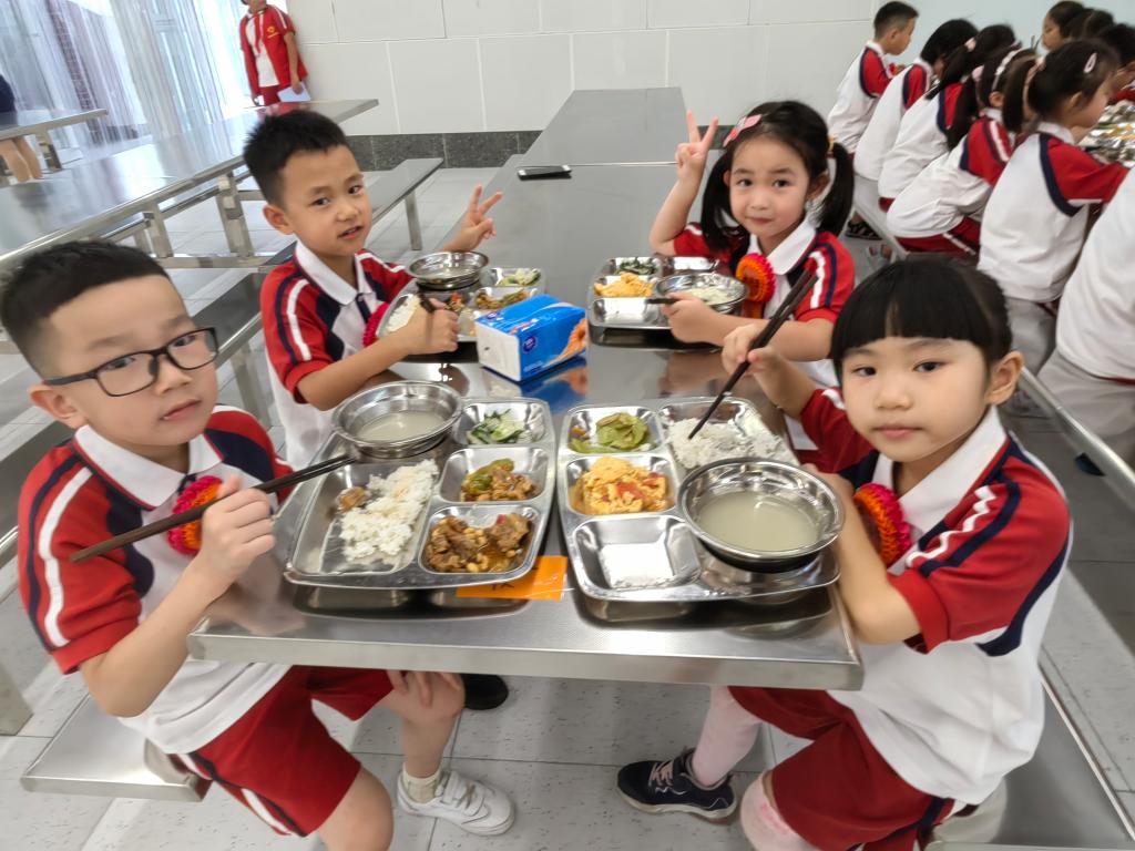 结束上午的课程,孩子们需要充值卡路里啦!“好吃!”“太好吃了!”丰富多样的自助餐让学生们频频赞叹。上学很美好,美食更不可辜负,看到孩子们一顿饱餐之后满意的笑容,学校的天空仿佛变得更蓝,欢声笑语更足了。