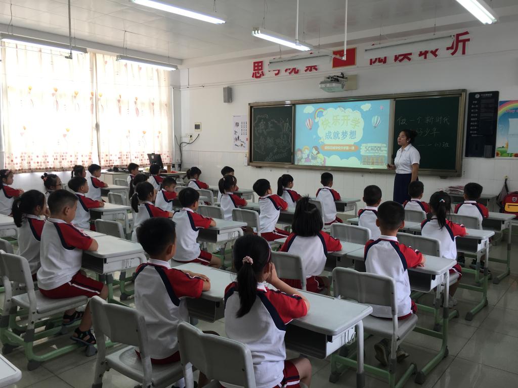 快乐开学,成就梦想。开学第一课,同学们专注的小眼神,挺得直直的腰板成为了课堂上一道亮丽的风景线。