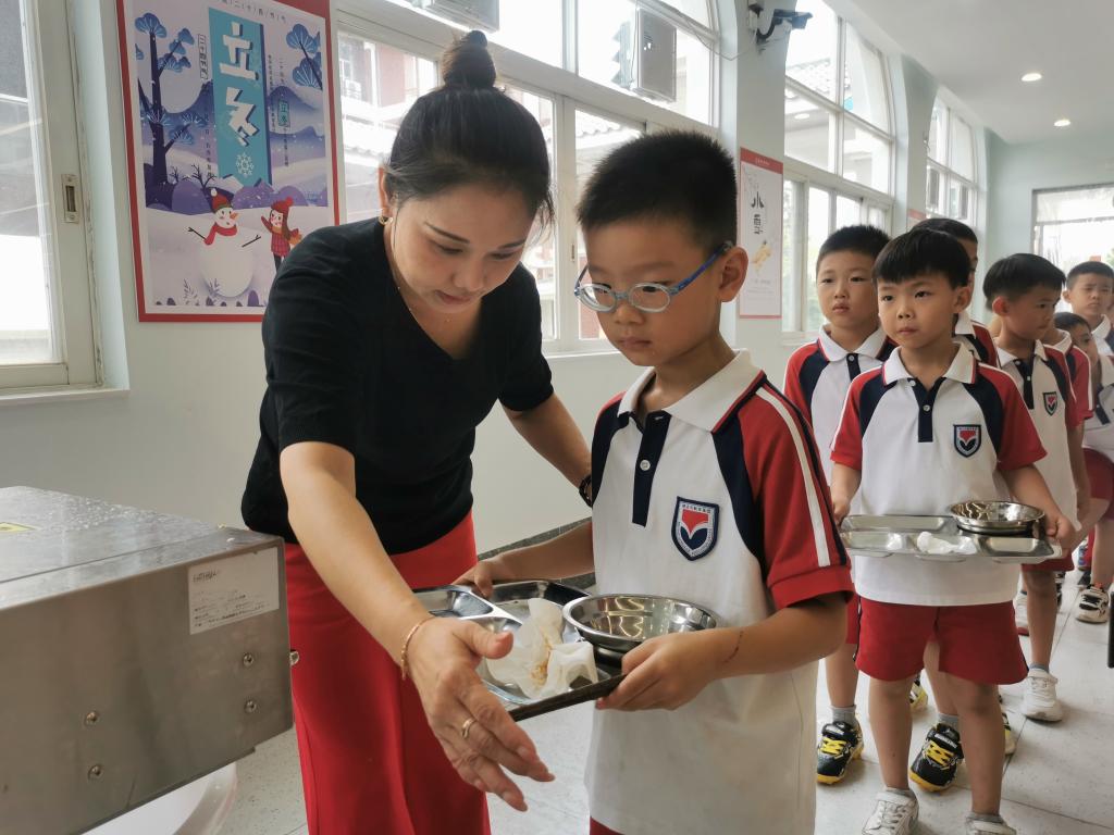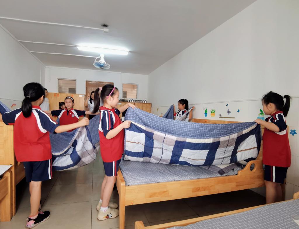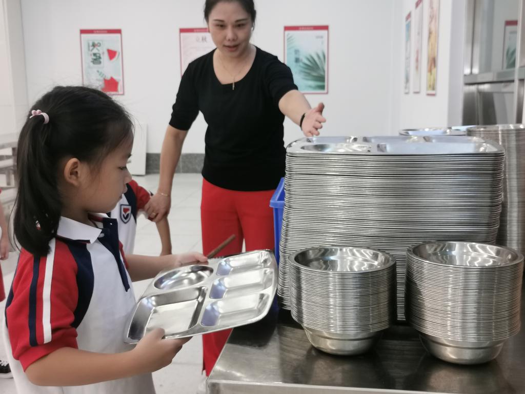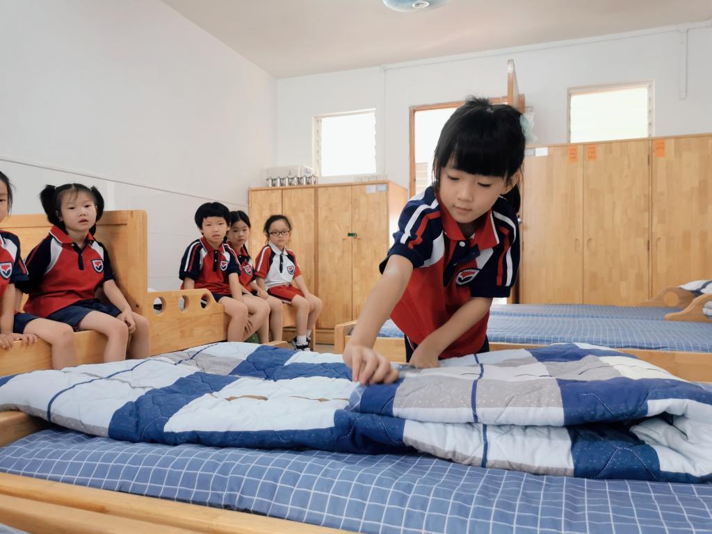 学会在食堂文明就餐,学会餐盘的正确回收,学会物品分类存放,学会把自己的被子叠整齐,这些看似简单的生活技能对一年级的学生们来说也许并不简单。