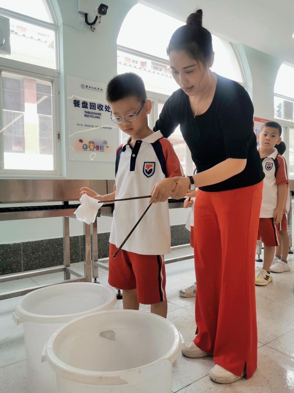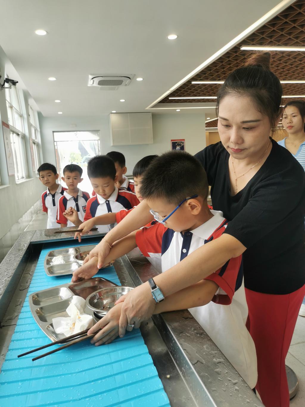 在舍务部郭永琴主任和生活老师的带领下,对一年级的学生开展了“学生就餐、取餐”专项技能指导。