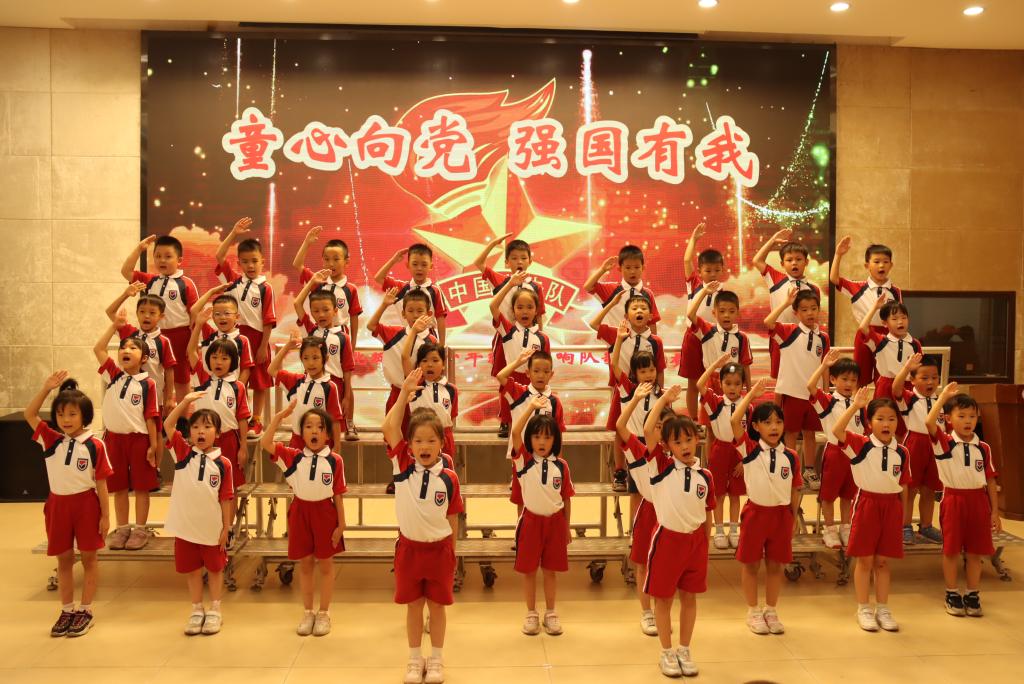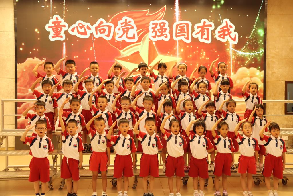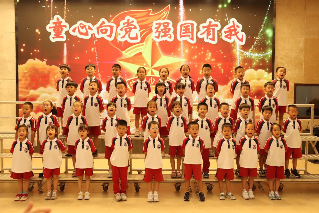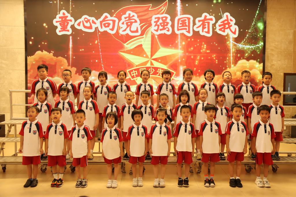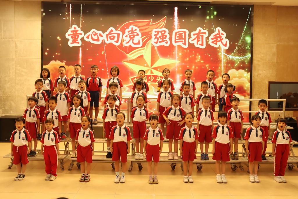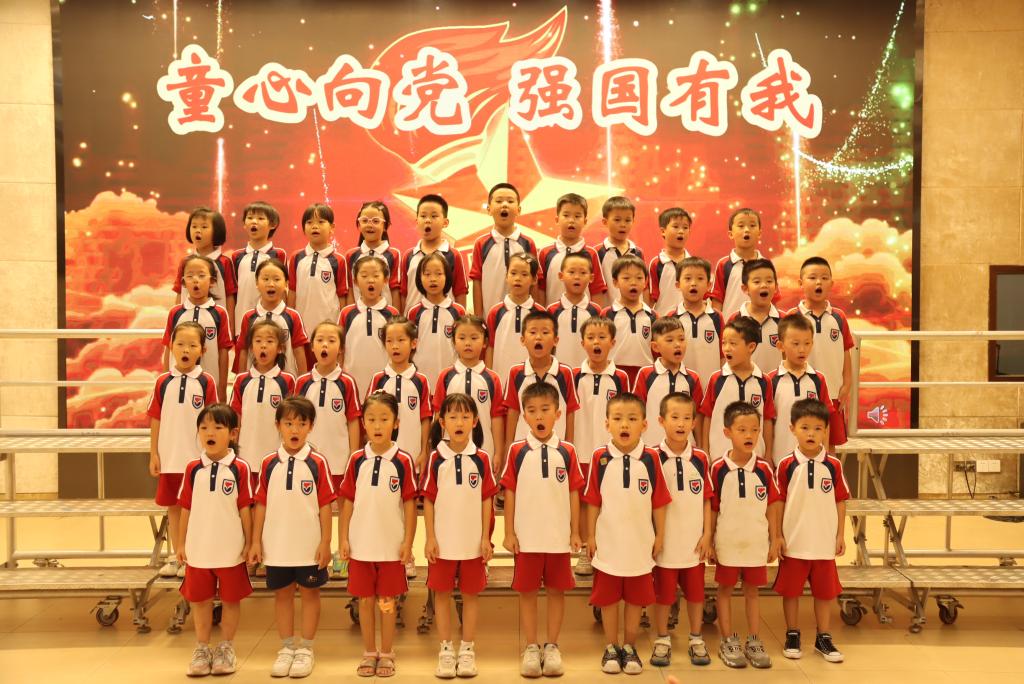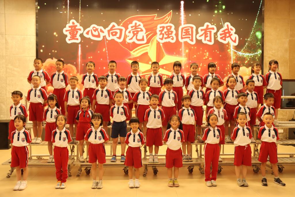 9月29日这天,博实乐碧桂花城学校全体一年级学生在班主任的带领下,在一楼学术报告厅举行了“童心向党 强国有我”唱队歌活动。