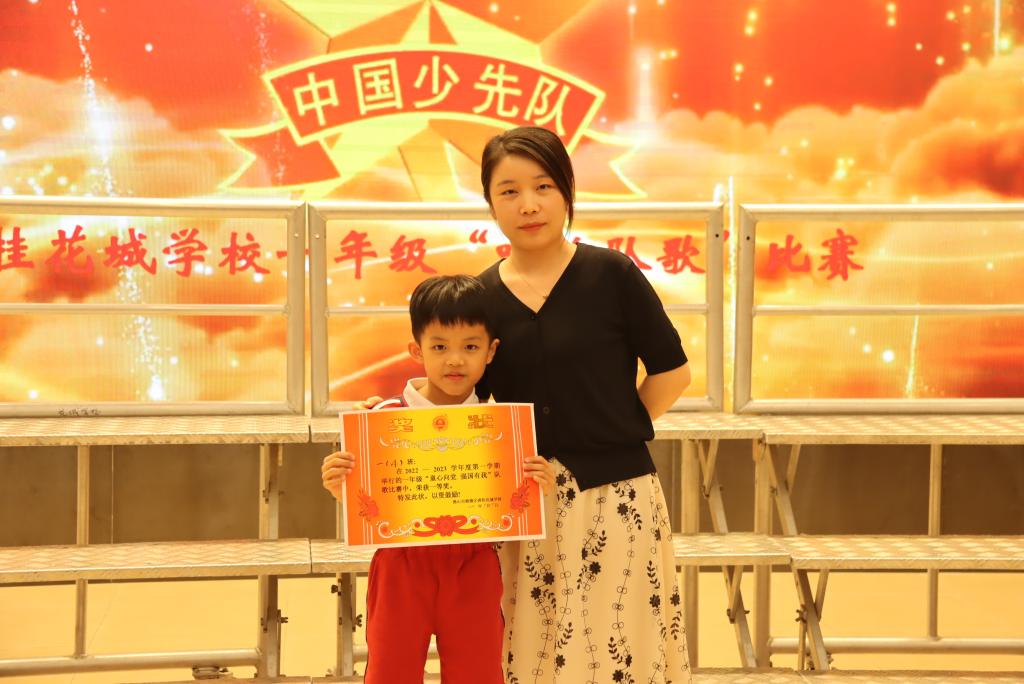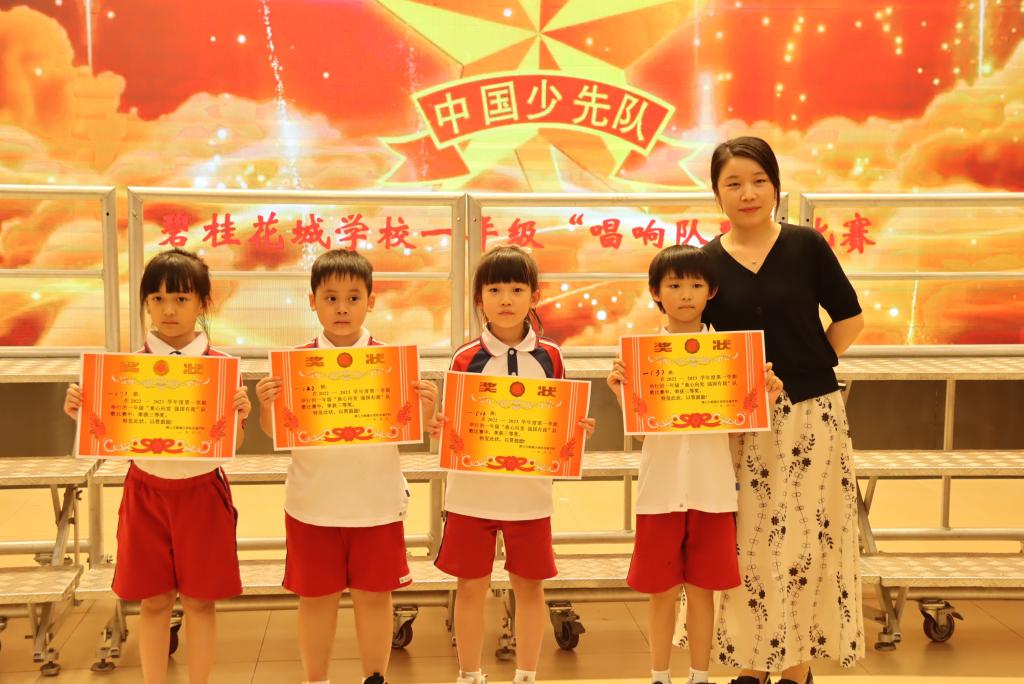 此时此刻,嘹亮的歌声传遍整个报告厅。激动人心的时刻已经到来,碧桂花城学校德育处马主任宣布最终获奖班级,现场气氛也由此推到了高潮。最终一(4)班荣获一等奖,一(5)班和一(6)班荣获二等奖,一(1)班、一(2)班和一(3)班荣获三等奖。