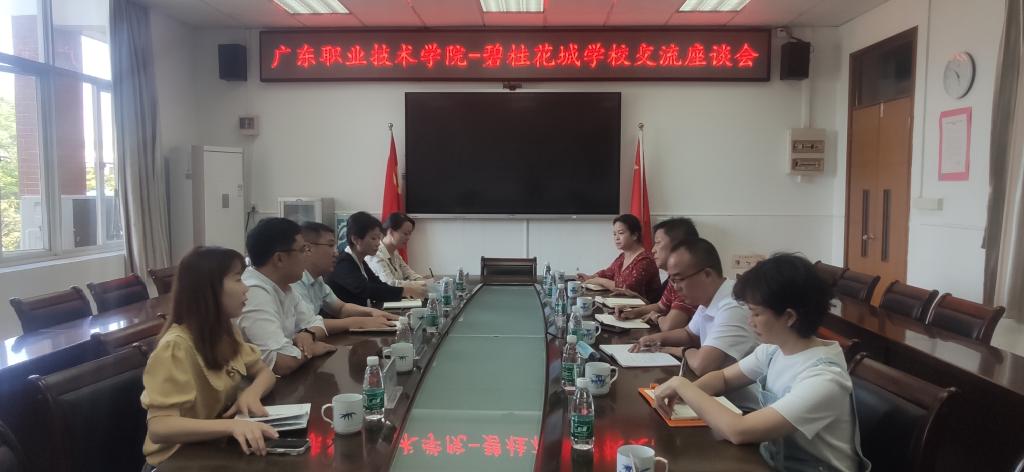 为加强校际的沟通交流,2022年10月12日,广东职业技术学院古发辉副校长带领各学院领导一行5人莅临碧桂花城学校参观交流。碧桂花城学校贺小勇校长带领各部门领导热情接待了古校长一行。
