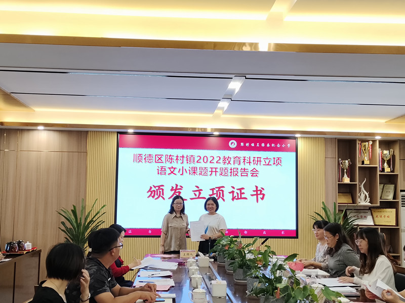 伴着和煦的秋风,怀着对教研的热忱,带着对教育的思考,顺德区陈村镇2022教育科研立语文小课题开题报告会在吴维泰纪念小学多媒体教室举行。