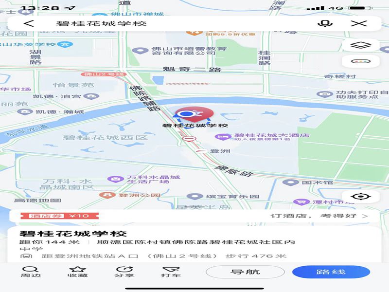 因疫情原因,家长不能进入校园,请您提前与孩子约定好考试结束后汇合的时间和地点(上午11:30前,下午16:30前来接)。学校没有停车场,家长可停车在碧桂花城大酒店停车场(较多车位),然后步行至学校南门。学校北门(佛城大桥下)也有少量停车位。