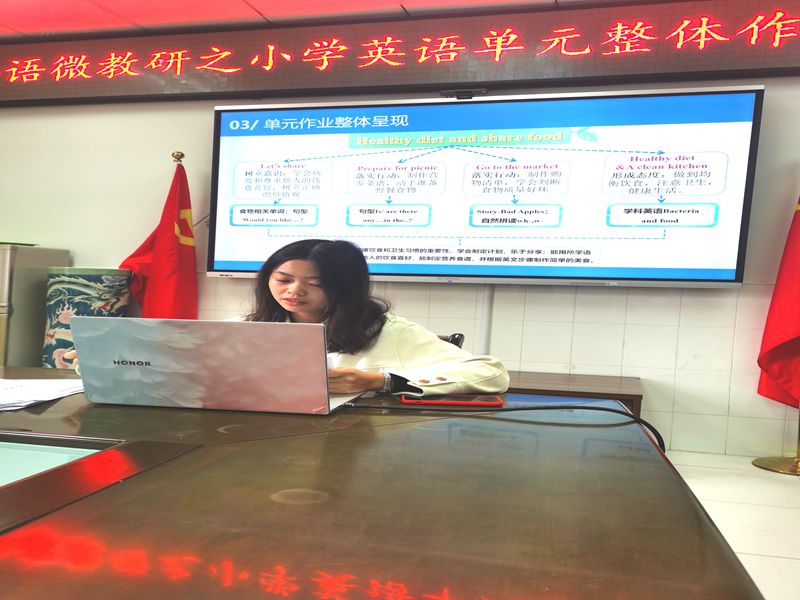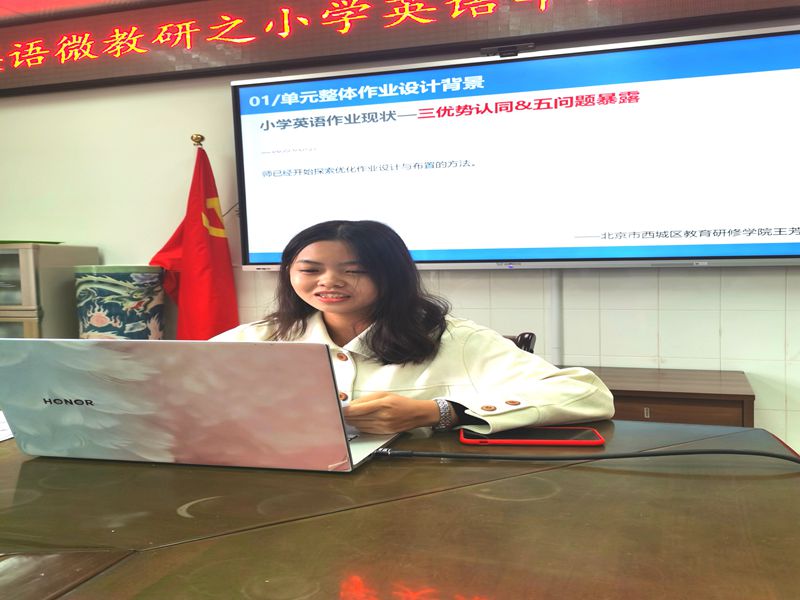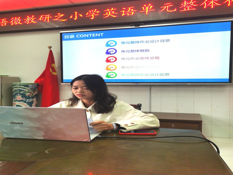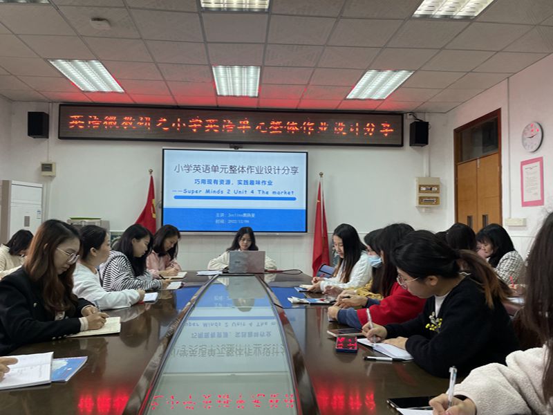 为进一步提升学校英语老师对单元整体作业设计的认识,2022年12月9日上午,碧桂花城学校全体英语老师在会议室召开了英语微教研活动,本次微教研活动由黄晓斐老师主讲,主题为《小学英语单元整体作业设计分享》。