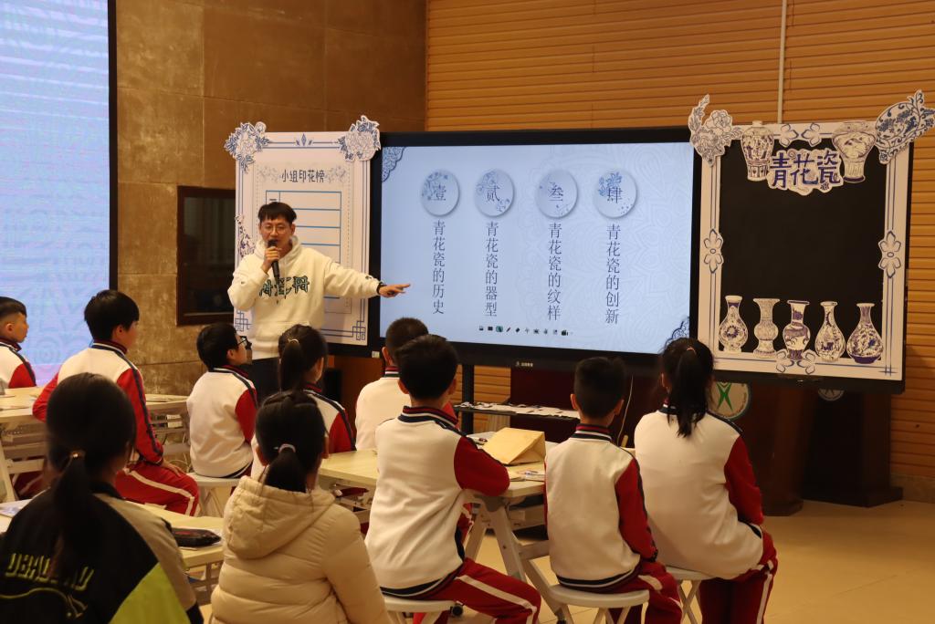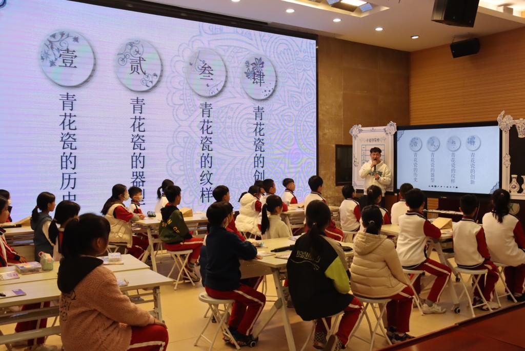 2022年12月12日晚,我校青年教师侯晓勋老师在学科带头人张峰老师的指导下为我们展示了一节妙趣横生的美术课--《青花瓷》。