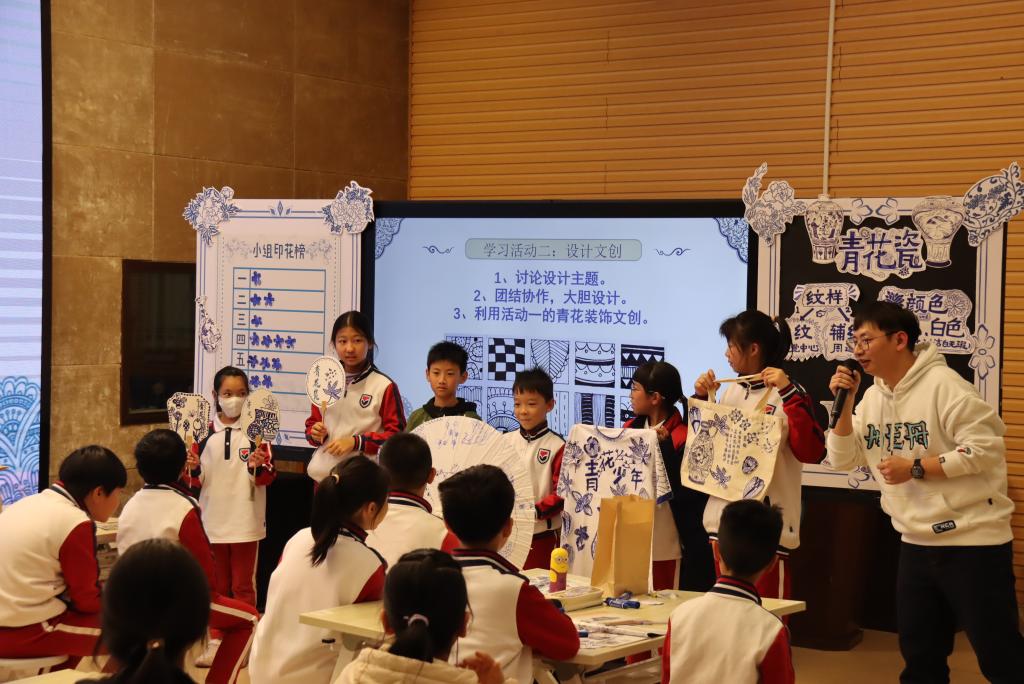 首先,学习青花瓷的历史,让学生了解中国在唐代已经开始出现青花瓷,在经历无数先辈们的研究,青花瓷在明清到达了顶峰,观赏青花瓷的巧夺天工后,学生无不赞叹先辈的智慧。紧接着,在介绍青花瓷的器型和纹样活动中,学生积极回答问题,课堂氛围活跃,学生的学习热情也被大大激发。最后,在青花瓷纹饰的创新环节,通过观赏不同物品上的青花纹饰,学生对青花纹饰在生活中的运用有了更深层次的思考。学生在小组活动中将青花纹饰设计在生活中的物品上,不仅满足了学生的创作想法,也对青花纹饰的实践有了更加直接的体验。