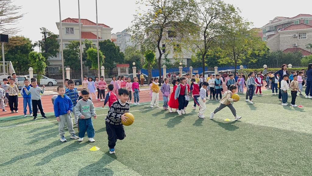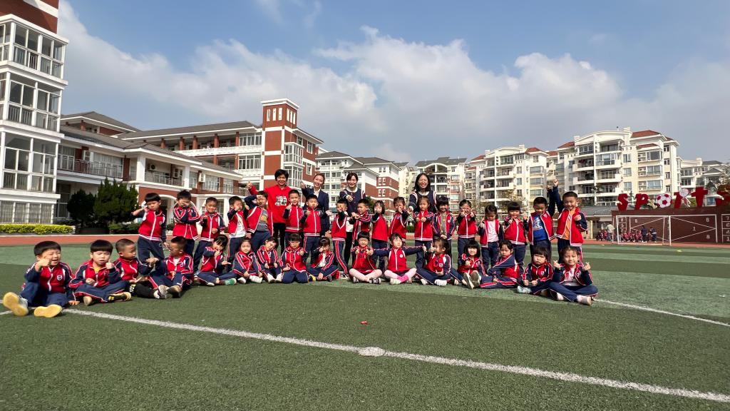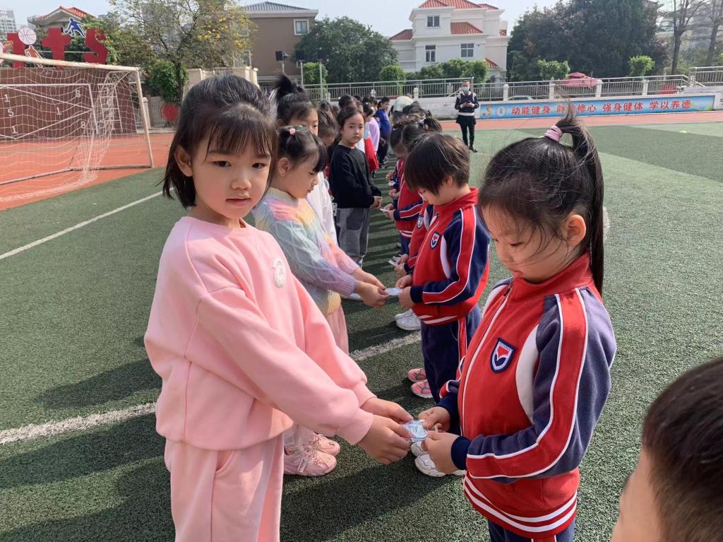 随后,在老师的带领下,小朋友在足球场上开始了趣味接力比赛,他们在球场上奋力地奔跑,激动地欢呼呐喊。哇!小学的生活多么丰富多彩啊!