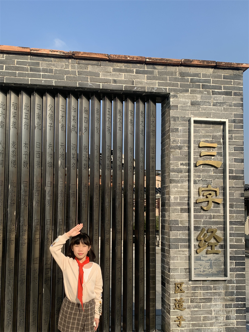 这次研学不但开阔了我的眼界,还让我学到了很多知识。这次研学让我最印象深刻的是三字经文化公园,映入眼帘的全是《三字经》宣传栏,虽然有很多字我不认识,但是能感受到里面的文化气息。