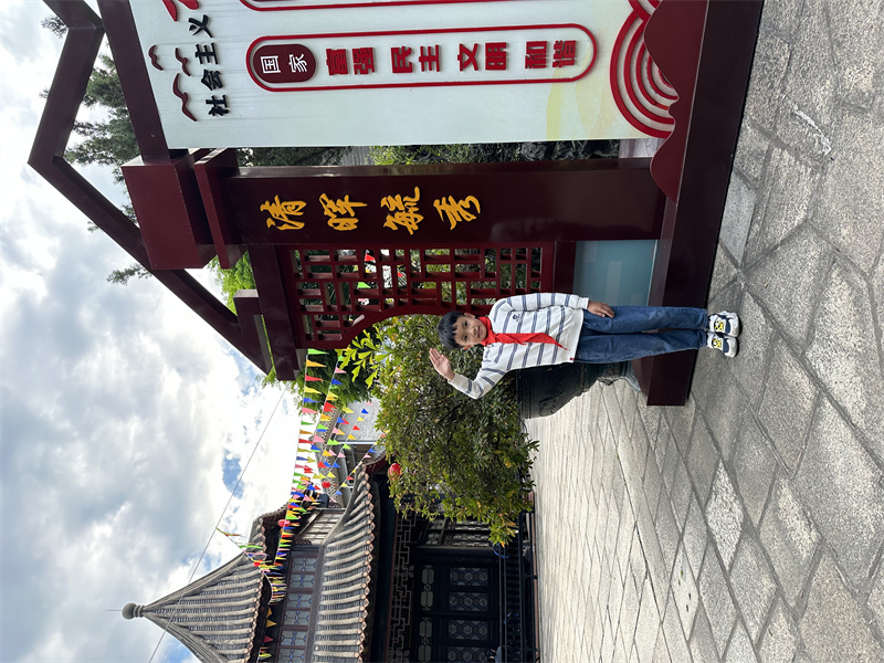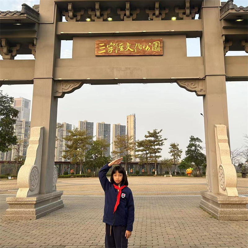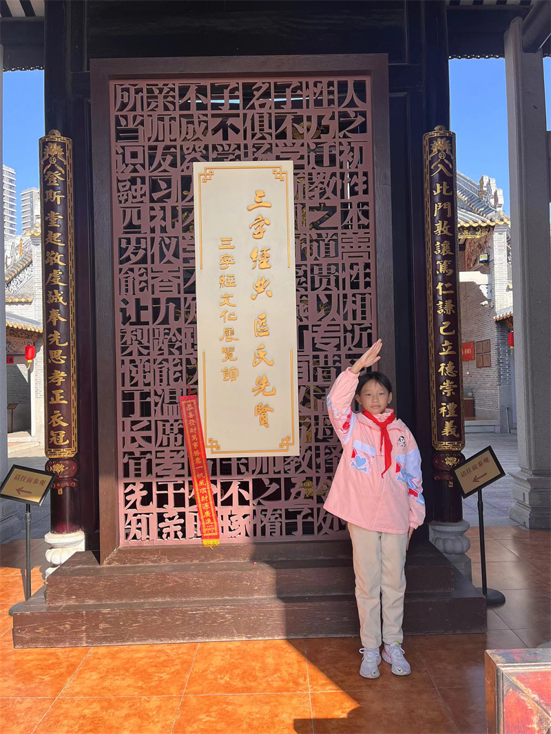 蒙文妤,二(6)班同学。她是一个求知欲强的孩子。寒假期间,她在家人的陪伴下,参加了顺德区“研学小凤凰”争章活动,体验了一段奇妙的研学之旅。在佛山博大精深的历史熏陶下,她感受到传统文化的魅力。此次经历让她更坚定自己的学习目标,为中华优秀传统文化的传承而努力。