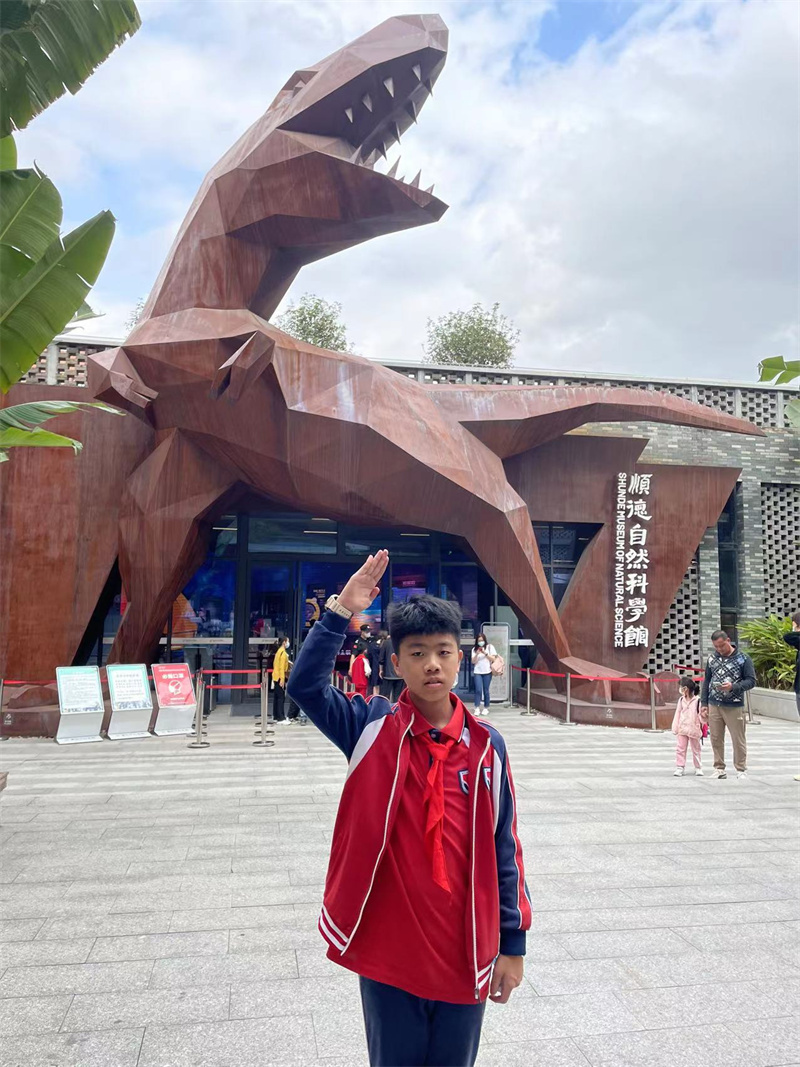 邓致远,六(4)班学生。他是一个勤于思考、乐于探究的孩子。在寒假期间,他积极参与研学活动,开拓视野。他参观清晖园,感受岭南园林的特色;他走进顺德自然科学馆,探索自然的奥秘。此次研学,让他走出课堂,走进生活,增长见闻,感受顺德本地的自然景观和人文历史等文化特色。