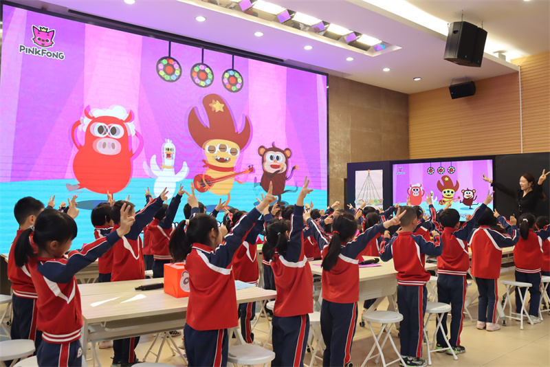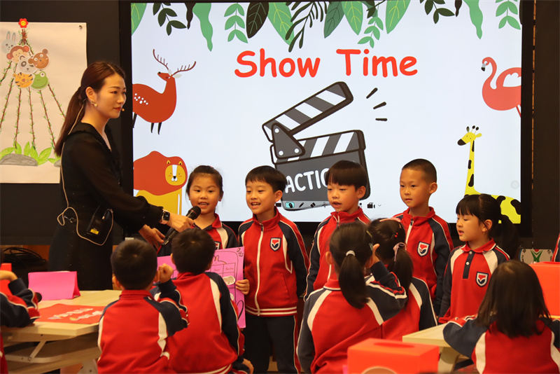 刘念老师带来一节以动物为主题的英语课。教学在活泼、律动的英语歌曲中开场,以学生去长隆野生动物园游玩为学习情境,和动物朋友“亲密接触”中认识各种动物,并顺势学习相关的英语单词。课堂活动丰富多样:歌曲、猜动物、火眼金睛、说话训练……从输入到输出,用输出倒逼输入。老师寓教于乐,课堂气氛活跃,学生收获满满。