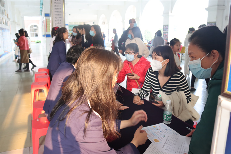 校长讲座过后,家长朋友们在入学咨询团老师们面前排起了长队。“花城学校教学优势表现在哪些方面?”“各科教材和其他区学校有否不同?”“任课老师是否为现三年级老师?”“可否住宿?有无校车接送?”等问题也是家长们咨询最多的。入学咨询团的老师们针对家长的困惑都热情、细致地给予了解答。