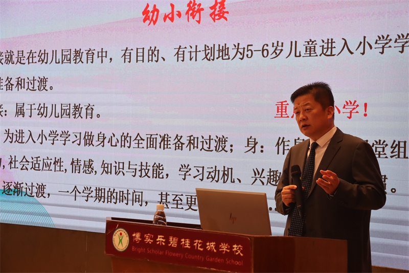 3月3日下午,碧桂花城学校学术报告厅座无虚席,这里正在举行的是我校2023年幼小衔接专题活动。