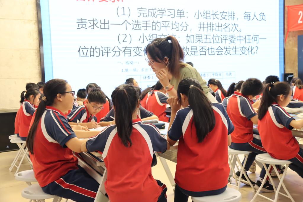 肖炜勤老师带领学生先复习旧知,再引入本节课的数学内容——平均数。在整节课中,肖炜勤老师通过顺德区3号列车的线路站点,创设了精彩的数学情景,让大家充分感知平均数的意义,建立平均数数学方法的模型。学生们在解决具体实际问题中,体会平均数的灵敏性以及平均数的取值范围。