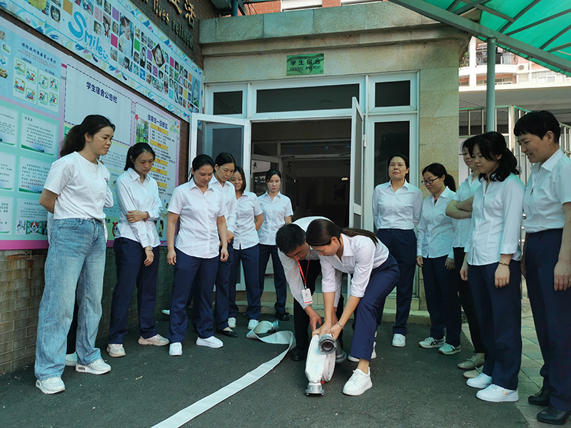 最后,郝队长采用边讲解边演示的方式让老师们更直观地感受消防水带的连接和铺设,并指导老师们进行操练,让老师们受益匪浅。