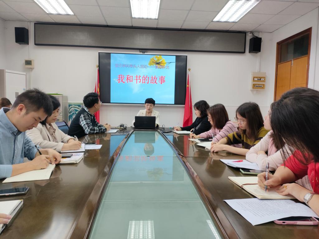 在世界读书日即将到来的日子里,碧桂花城学校语文科组于4月4日上午在学校二楼会议室举行了主题为“我和书的故事”的读书沙龙活动。本次活动是由语文学科带头人焦肃英发起,花城学校语文老师全体参与,花溪碧桂园国际学校老师们也积极响应的一次浸润心灵的读书沙龙活动,花溪碧桂园国际学校的副校长武秋芬也参与了此次活动。