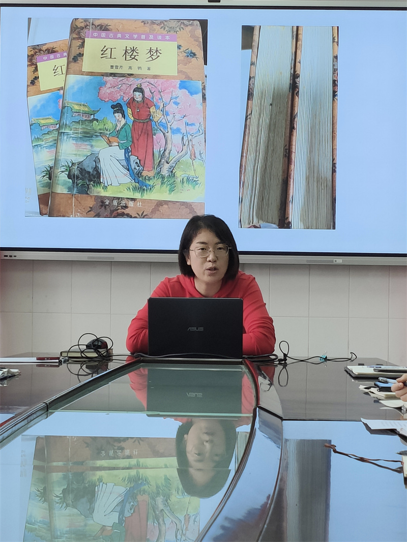 冯玲玲老师推荐的是我国古典名著——曹雪芹的《红楼梦》。冯老师的介绍把我们又带回到那个懵懂、青涩、初尝爱情滋味、情窦初开的纯真岁月。在推荐中,冯老师主要跟我们分享了《红楼梦》的诗词对她学习古典文学的影响。她认为品读书中的故事,用自己的生活感悟理解书中的人物,用人物的感悟去面对生活。那些感悟会沉淀成智慧,凝结成思想,静静地待在心灵深处,只要被触动,就会喷薄而出,成为工作和生活的“养分”,不断滋养自己。