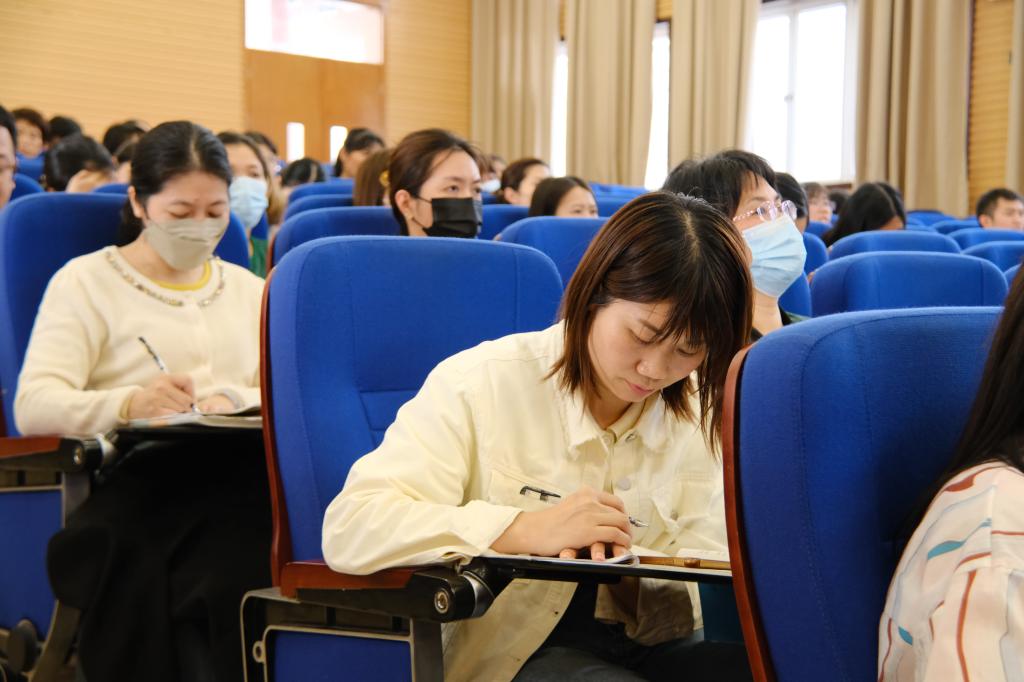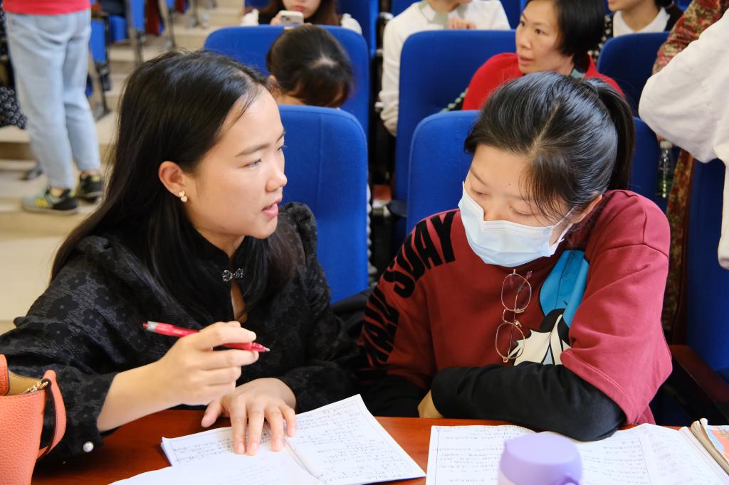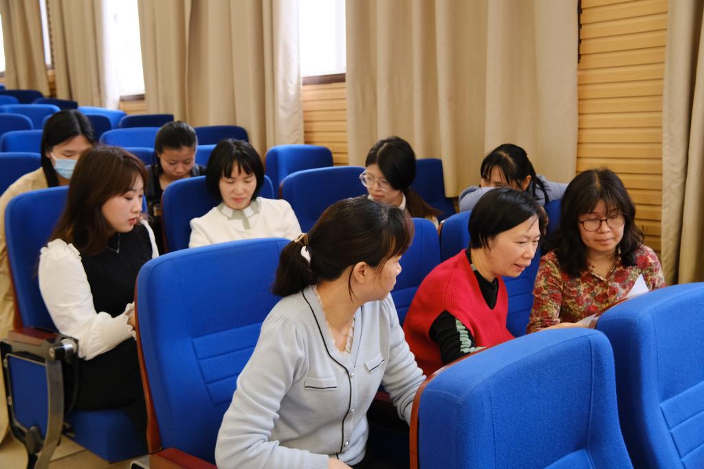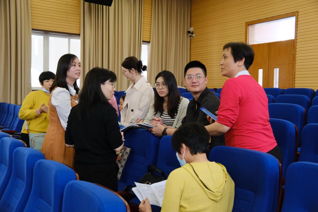老师们凝神聚听,笔录不停,收获颇多。课后,各校老师围绕黄老师的课例进行深入的研讨,并派代表发言,整个研讨过程氛围热烈融洽。最后,片区教研组长卢意老师进行了指导性发言和综合性点评。卢老师强调大单元教学设计要从零散走向关联,由浅表走向深入,向深度学习思维课堂推进。教师在课堂上搭建“问题解决”的评价支架,引导学生在核心任务设计的活动中完成学习的任务,形成教学评一体化。