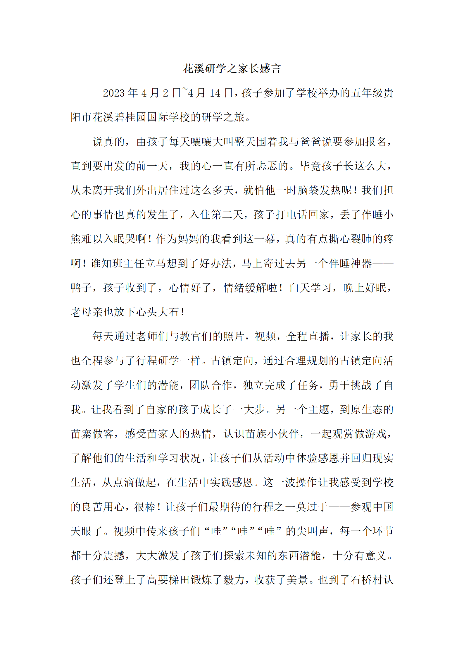创新研学——家长心声