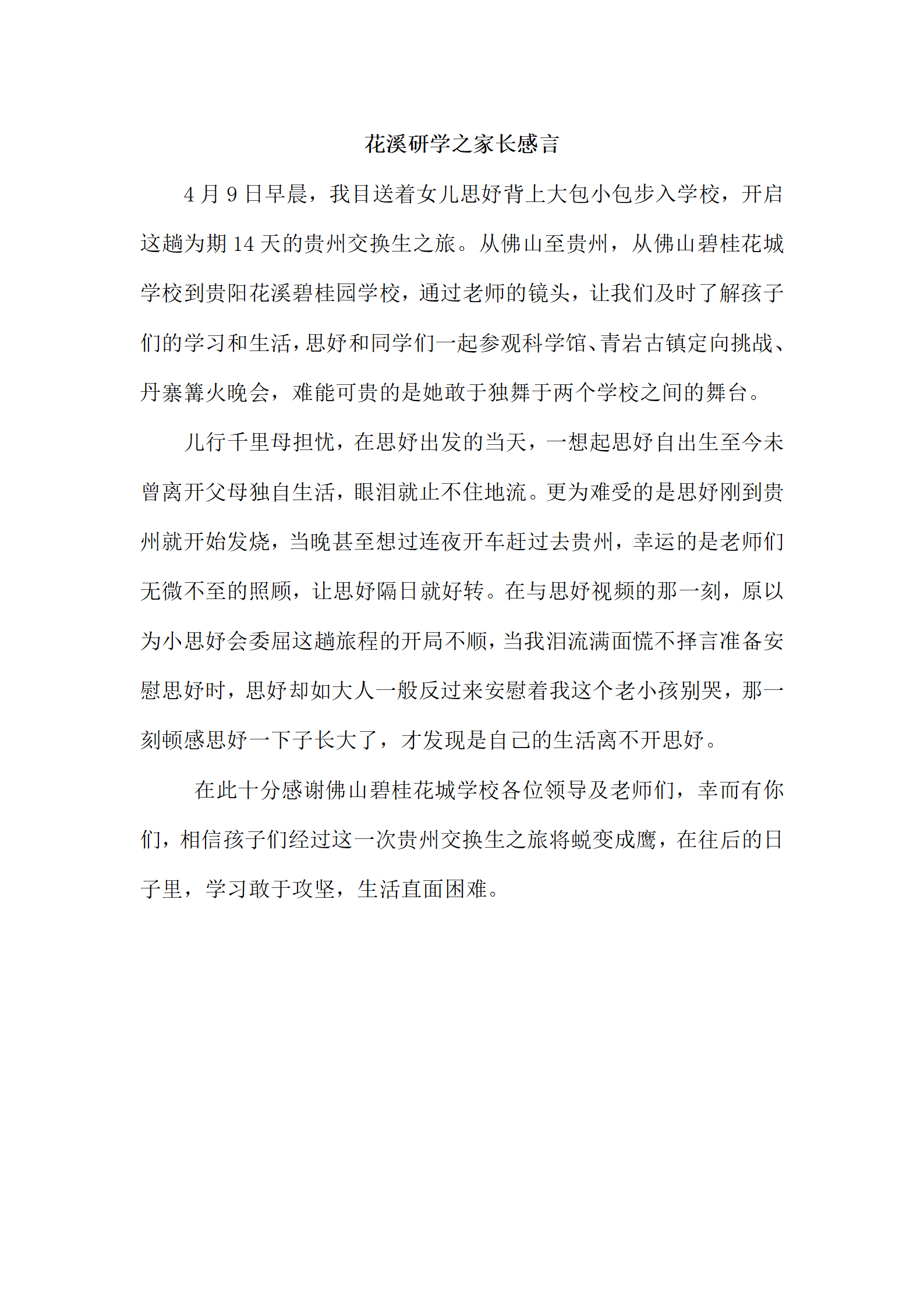 每一项活动的开展都离不开家长的支持,花城学校一直坚持家校结合,共促孩子们的成长,此次交换生研学活动得到了广大家长朋友的高度认可与赞扬。我们一起来看看。