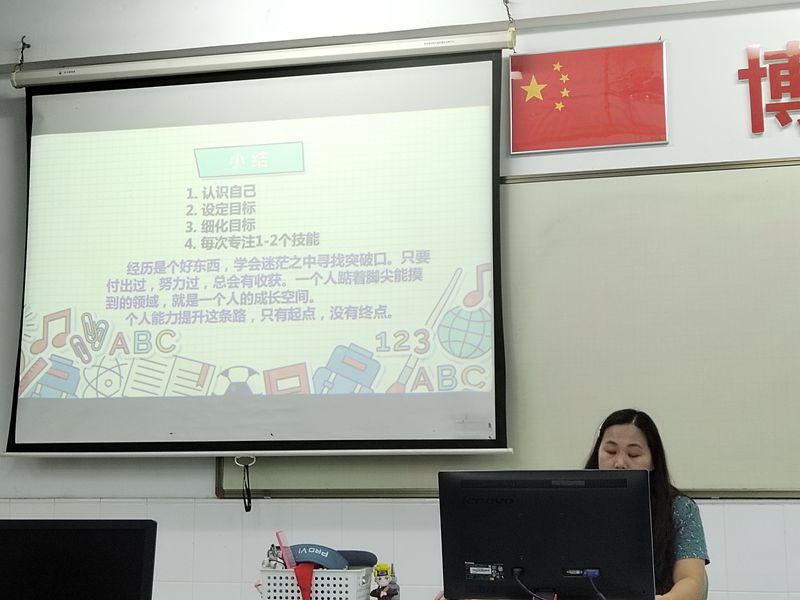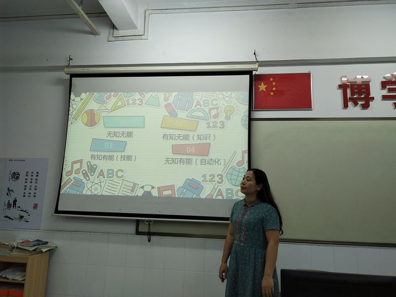 4月21日,碧桂花城学校英语组在电脑室举行了“关于自我提升的几点思考”的微教研。本次微教研的主讲老师是罗燕梅老师。罗老师从“能力提升的四个阶段”和“专业知识领域和非专业知识领域的提升思考”两大方面跟老师们进行了分享和交流。
