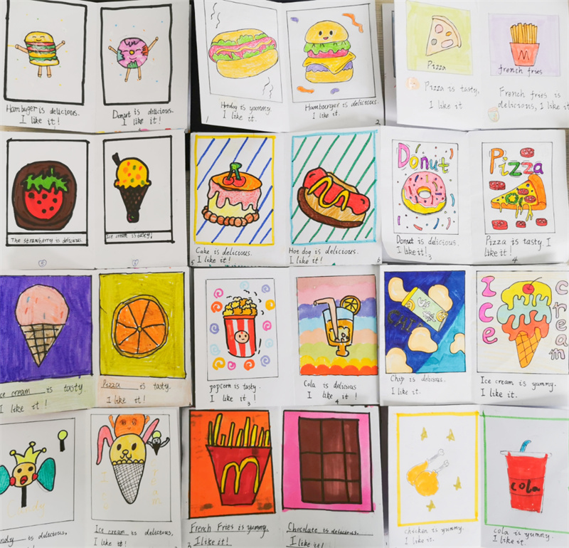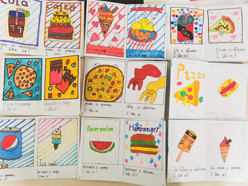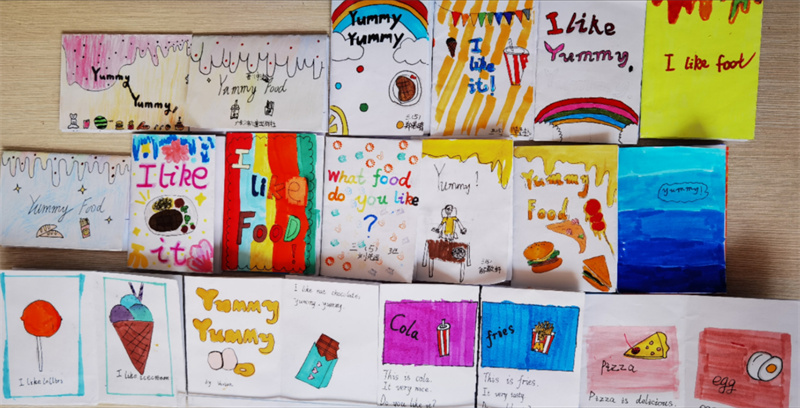 看!学生们亲手制作的绘本,它们颜色鲜艳,绘画精美,书写工整漂亮,极大地激发了学生们英语阅读的兴趣。