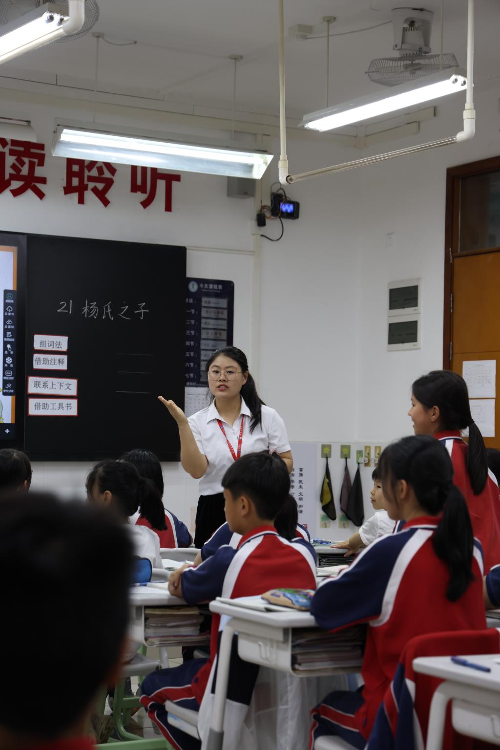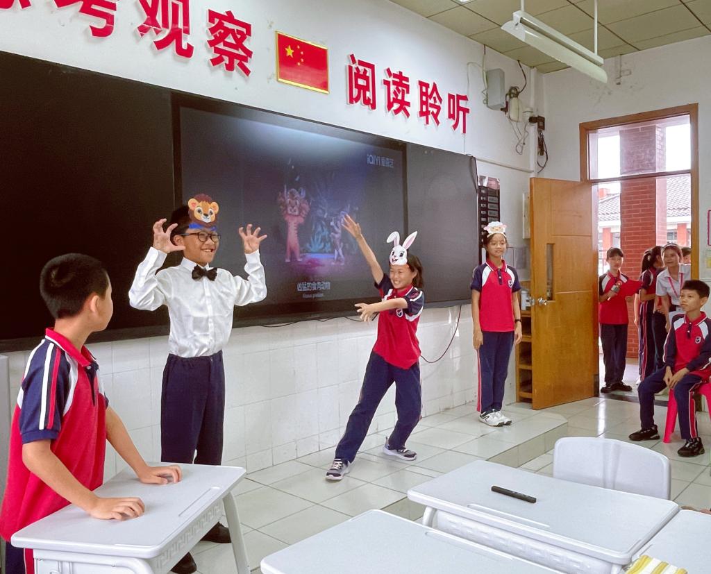 五年级语文老师胡丽燕带来一节生动的课堂《杨氏之子》。在课堂上,胡老师以“教会学生会学习”为原则,努力降低学习文言文的难度,让学生初步感受文言文的语言特点。初学文言文的学生在朗读时可能会停顿不准确,为了解决这个问题,胡老师采用了多种朗读方式,如范读、指名读、学生练读和同桌互读等,让孩子们有趣地读了一遍又一遍,深入地品味了文言文的韵味。在表达人物语言的风趣和机智这一环节中,胡老师抓住了重点语句,耐心地指导朗读,让学生深入感受文言文的精髓,体会这段课文中的智慧与仁爱。