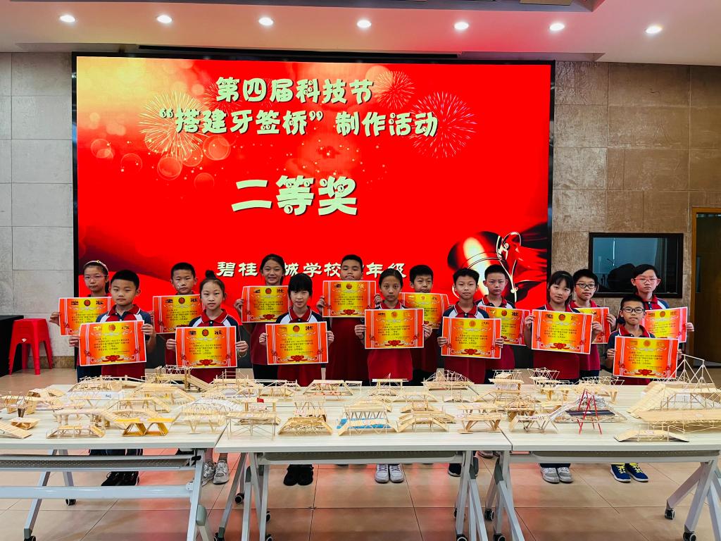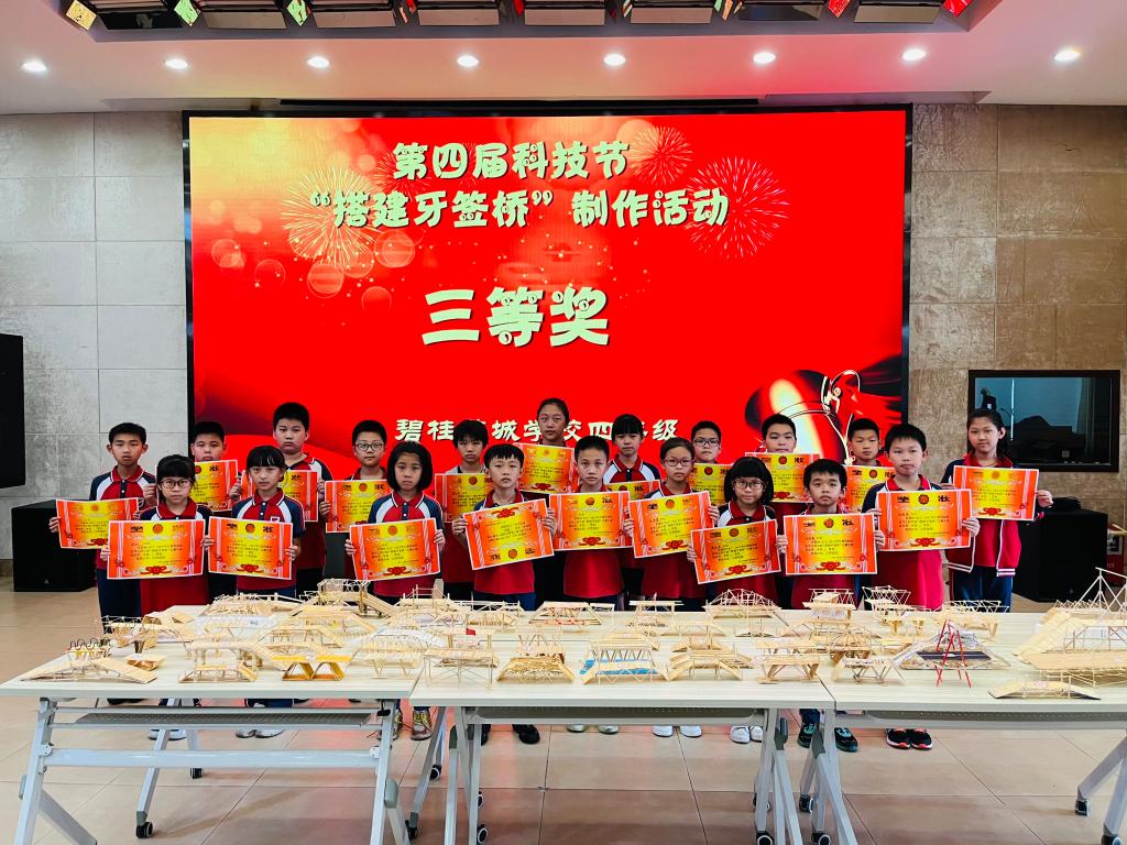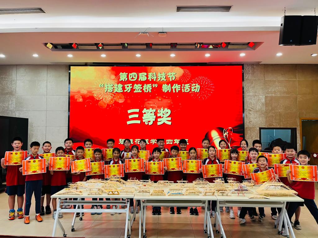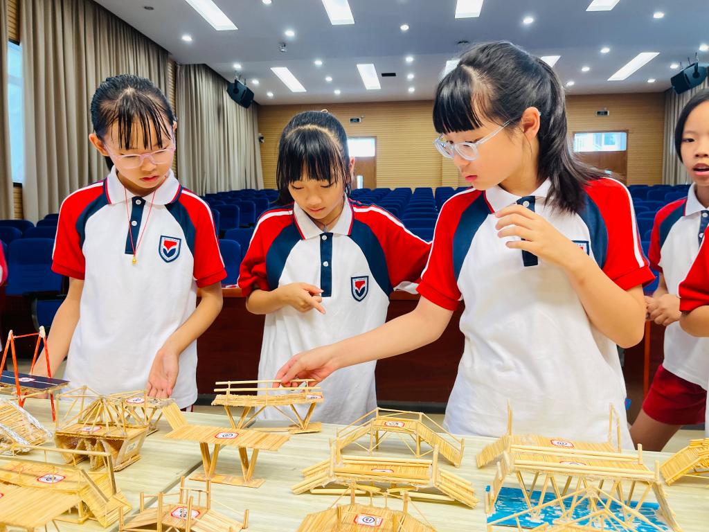 碧桂花城学校在第四届校园科技节期间,为四年级同学举办了用牙签搭建桥梁的比赛活动。活动中,老师们向学生们讲解了桥梁的构造和原理,并给学生们布置了搭建桥梁的实验任务,让学生们更加深入的了解科学实验。