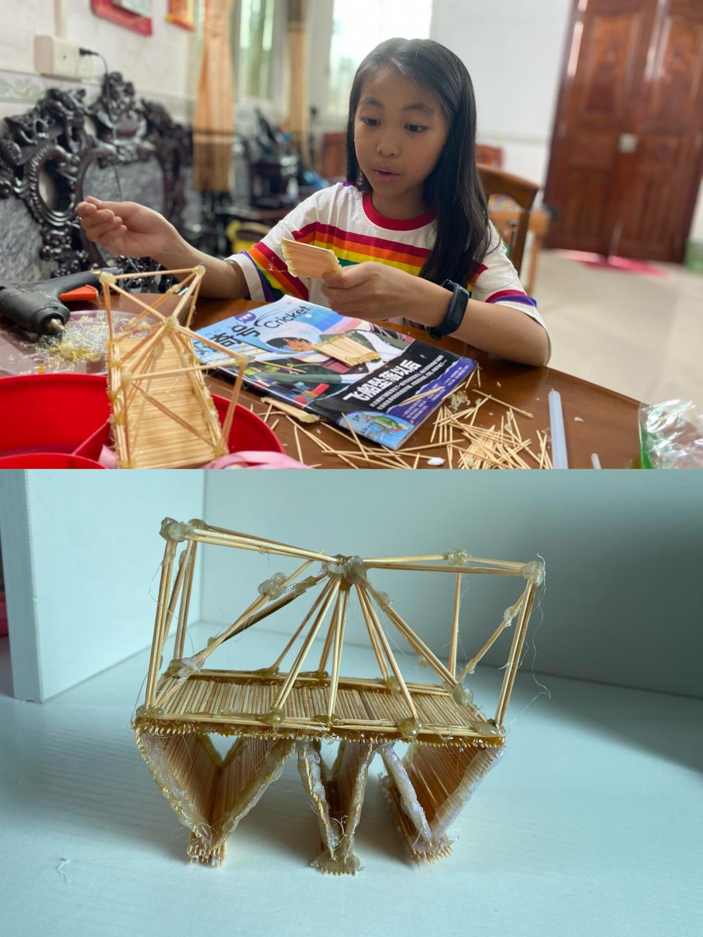 每一座牙签桥都饱含着同学们独特的创意、巧妙的手工和辛苦的付出。同学们主动去实验,反复操作。这个坚持的过程,磨练学生的了耐心,塑造了学生严谨的科学态度;更让孩子们爱上了设计,也更加热爱科学了。小小的牙签,大大的能量。实践和探索的种子已经在孩子们的心里生根发芽。结构造就框架,思维成就未来,未来真正的桥我们来设计!