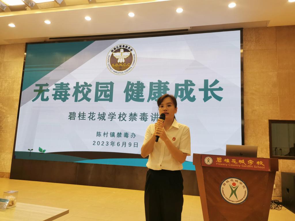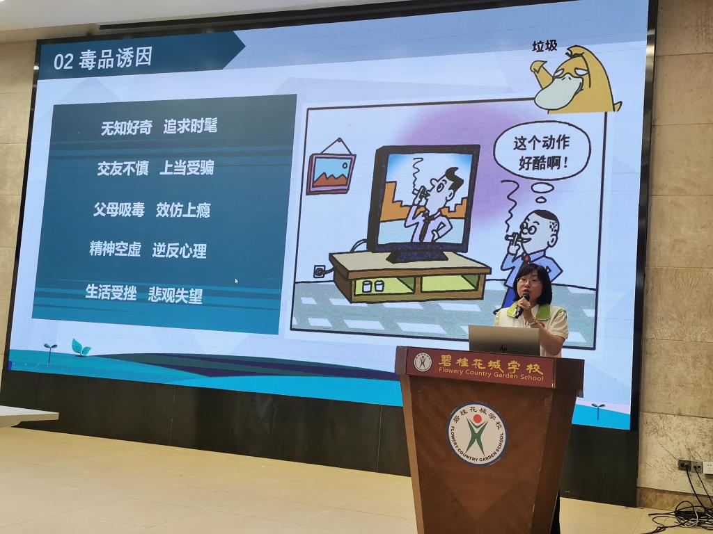 为深入贯彻落实各级禁毒工作会议的精神,充分发挥学校教育在预防毒品教育活动中的重要作用,使广大学生认清毒品的危害,进一步增强防毒、拒毒意识,确保“学生不吸毒、校园无毒品”,还给学校一片纯净的环境。我校于2023年6月9日组织开展“ 珍惜美好生命,远离毒品之害”的禁毒教育宣传活动。参加本次活动的人员有法治副校长周嫄(佛山市中级人民法院一级法官)、陈村镇启明星禁毒社工、碧桂花城学校副校长赵定国、德育处主任郭园及四年级部分师生。