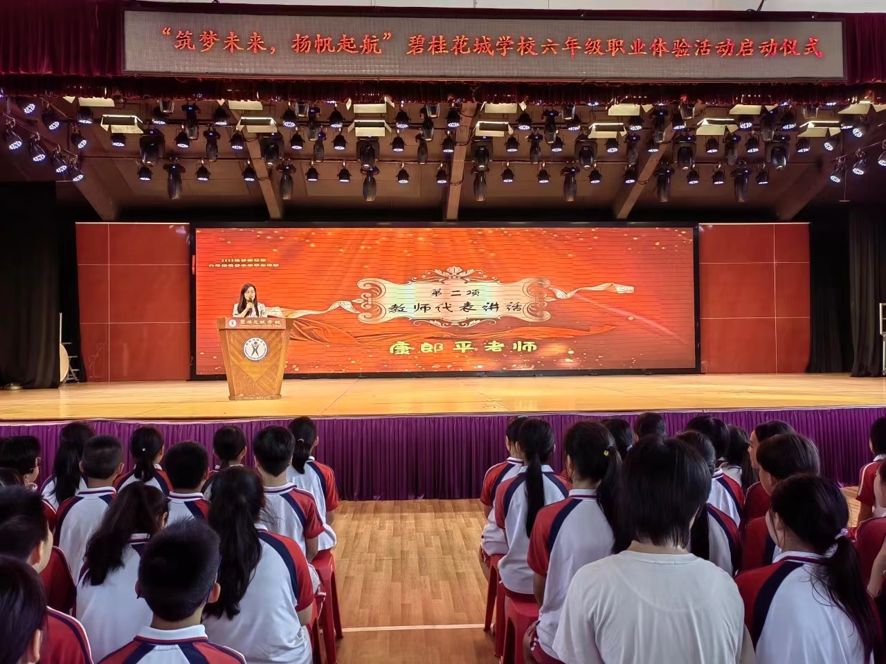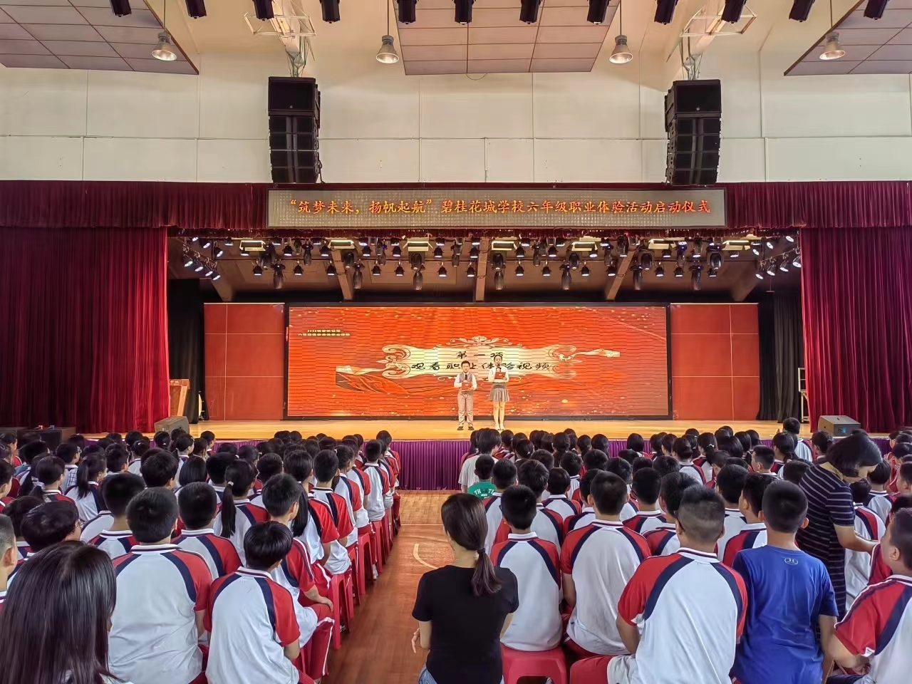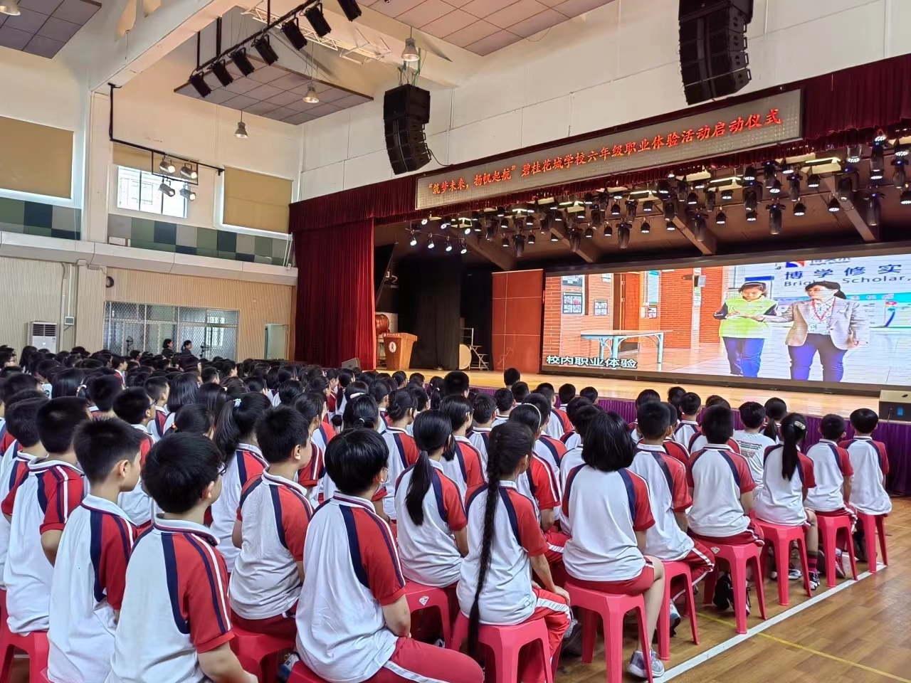 为了更好地帮助学生在生涯自我探索的基础上去了解生涯职业世界,引导学生将当前的学习与未来职业建立联系,对可能意向的职业领域进行有针对性的探索,激发学生学习和生活的内驱力,让每个学生成为更好的自己。碧桂花城学校于2023年9月28日下午,成功举行以“筑梦未来,扬帆起航”为主题的六年级职业体验活动启动仪式。