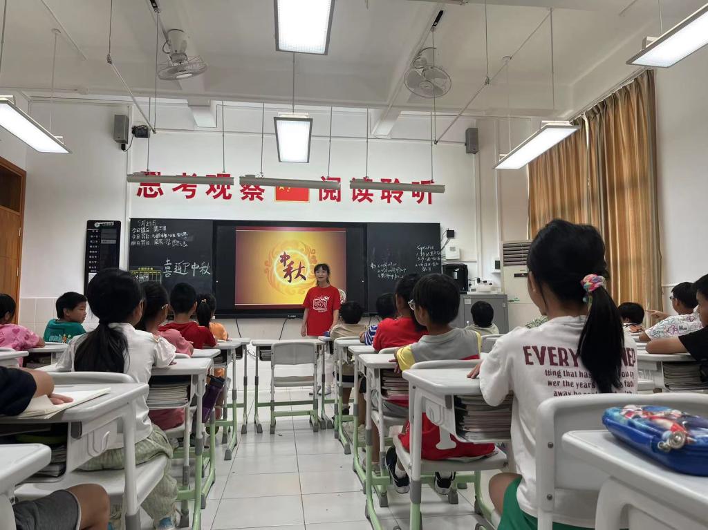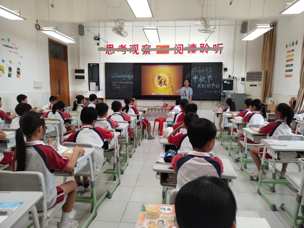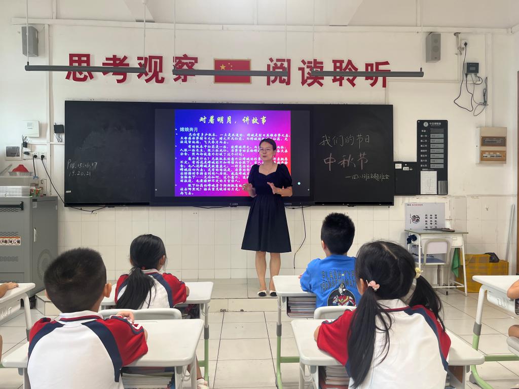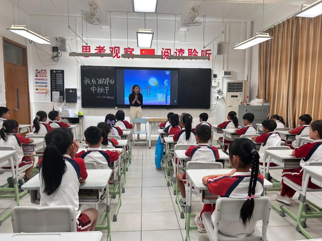做月饼前,各班同学在班主任的组织下开展了中秋节班会课活动,同学们听嫦娥奔月、玉兔捣药等中国传统故事,欣赏中秋的诗词,还跟着视频学习制作冰皮月饼的方法。