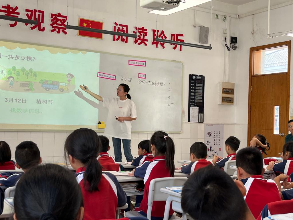 李诗琪老师执教的《小树有多少棵》一课,课堂通过复习旧知来引入新课,为学生转化思想探索新知做好了铺垫。课堂上李老师巧妙创设学生熟悉的“植树节”这一场景,让学生在自主探索中,理解整十、整百数乘一位数的口算方法,并能正确进行口算;在交流的过程中,体会计算方法的多样性,会择优应用。这样的教学过程有效培养了学生独立思考、善于倾听、勇于表达的良好习惯。
