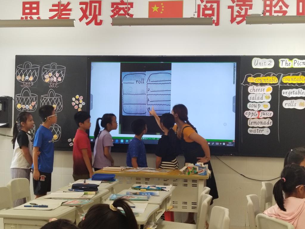 张老师很注重教学的细节问题,如在教授新词时,能够进行自然拼读法的渗透。同时新词都是在四线格中呈现,为学生的正确书写展示了范例。而当学生回答错误时,老师也能亲切地摸摸学生的头安慰学生,这样有利于培养融洽的师生关系和营造轻松愉快的学习氛围。