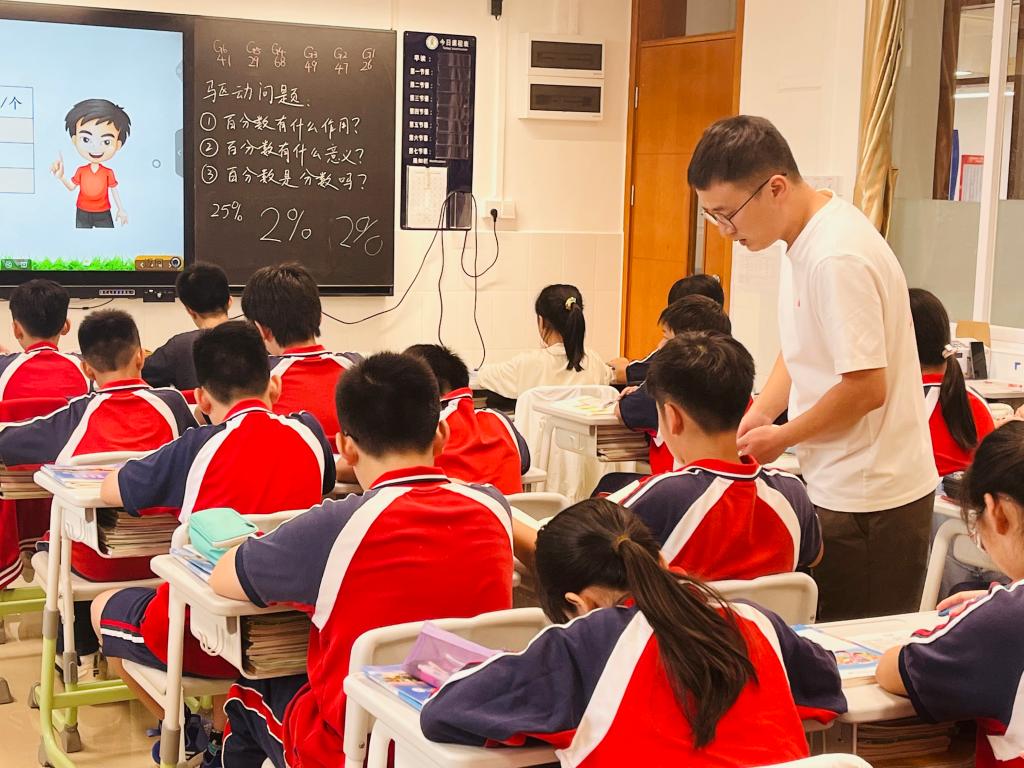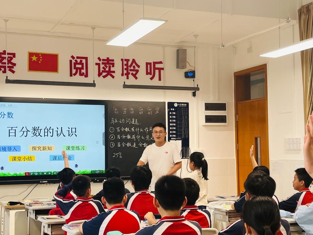徐伟老师执教《百分数的认识》一课。这节课既灵活又开放,一环紧扣一环,层层递进,遵循了教育教学的规律和学生的心理特点。在课中从百分数概念的引入——概念的形成——概念的强化——概念的运用。每一个环节都从学生熟悉的生活情境出发,为学生提供相互大胆交流的环境,学生的角色由被动的执行者,转化为主动探究者,学生在思辩中理解了百分数的意义。在这样的学习过程中,使本节课的重点、难点得到了有效的落实与突破,极大的建立了学生学好数学的信心,提升了学生的素养。